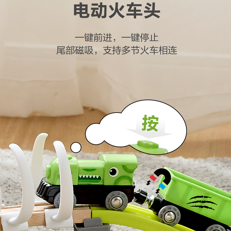 Hape火车轨道恐龙冒险收纳套电动火车儿童玩具拼搭积木生日礼物