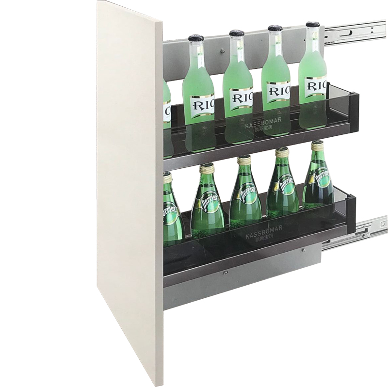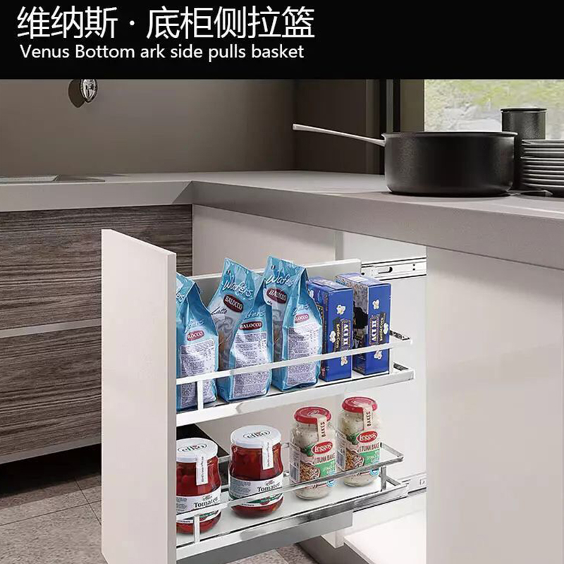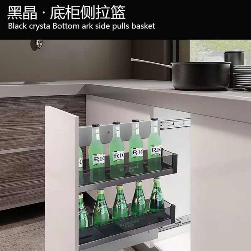 凯斯宝玛地柜侧拉l篮橱柜窄拉篮侧装轨道置物篮侧抽拉式窄调味篮