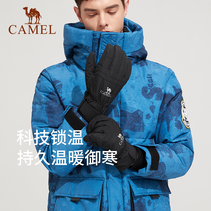 骆驼防滑骑行手套户外2025冬季新款防风加厚保暖可触屏滑雪手套女