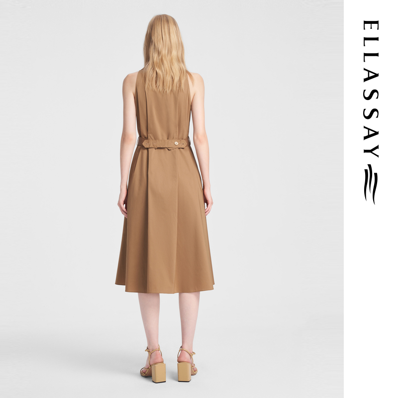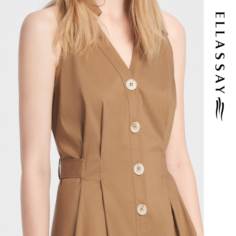 歌力思奥莱夏季新款棉感衬衫裙A字大摆无袖连衣裙女Y033