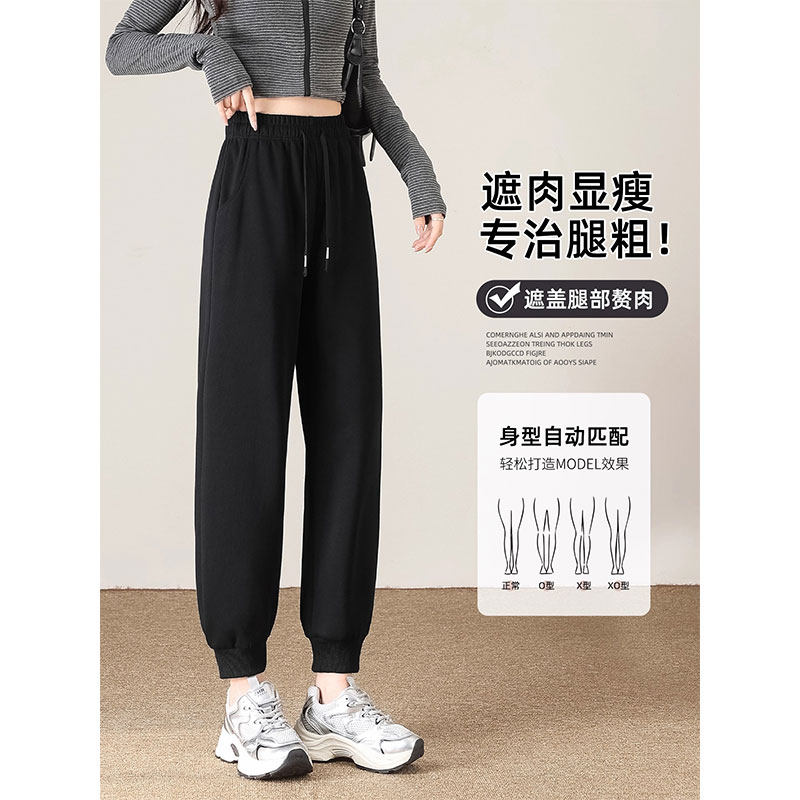 真维斯休闲裤女款秋冬季2025新款小个子加绒长裤束脚运动卫裤女士