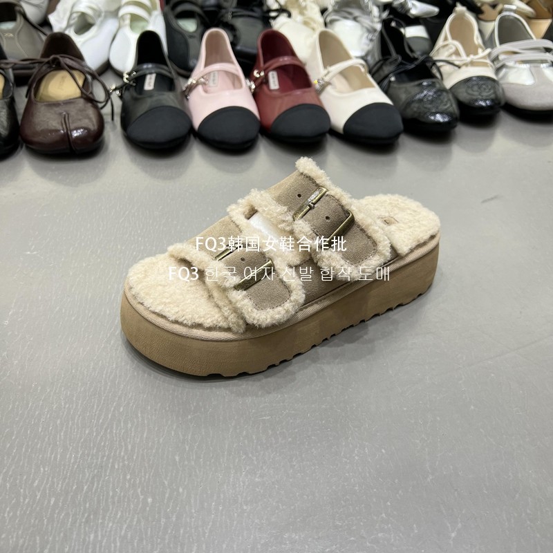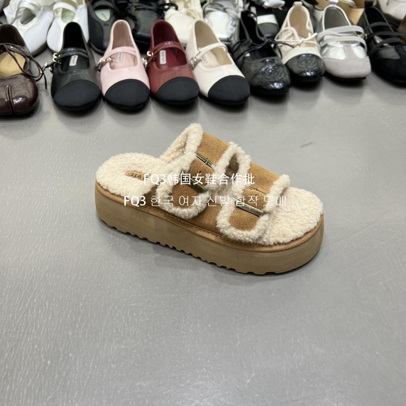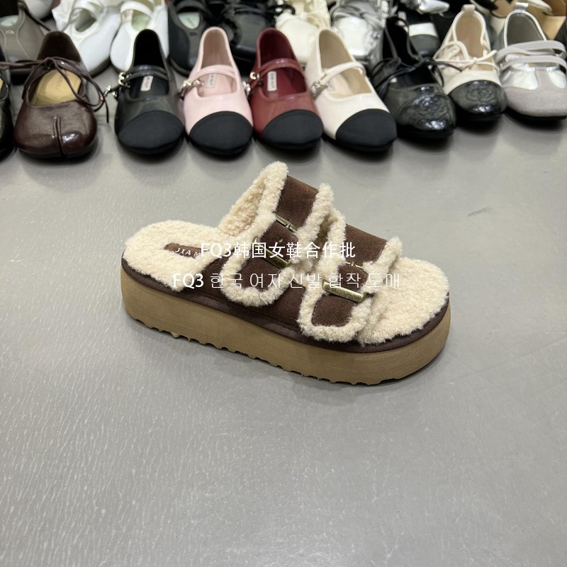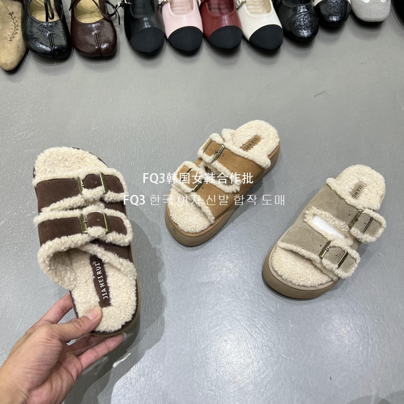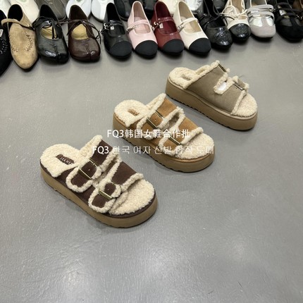 FQ3实拍 JIAMEIRUI 双扣增高厚底毛毛拖鞋女外穿复古勃肯加绒棉鞋