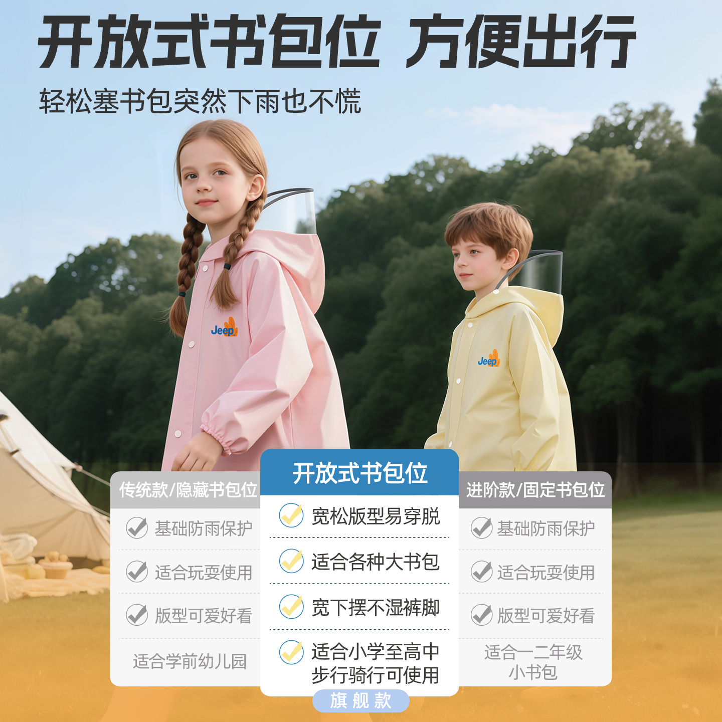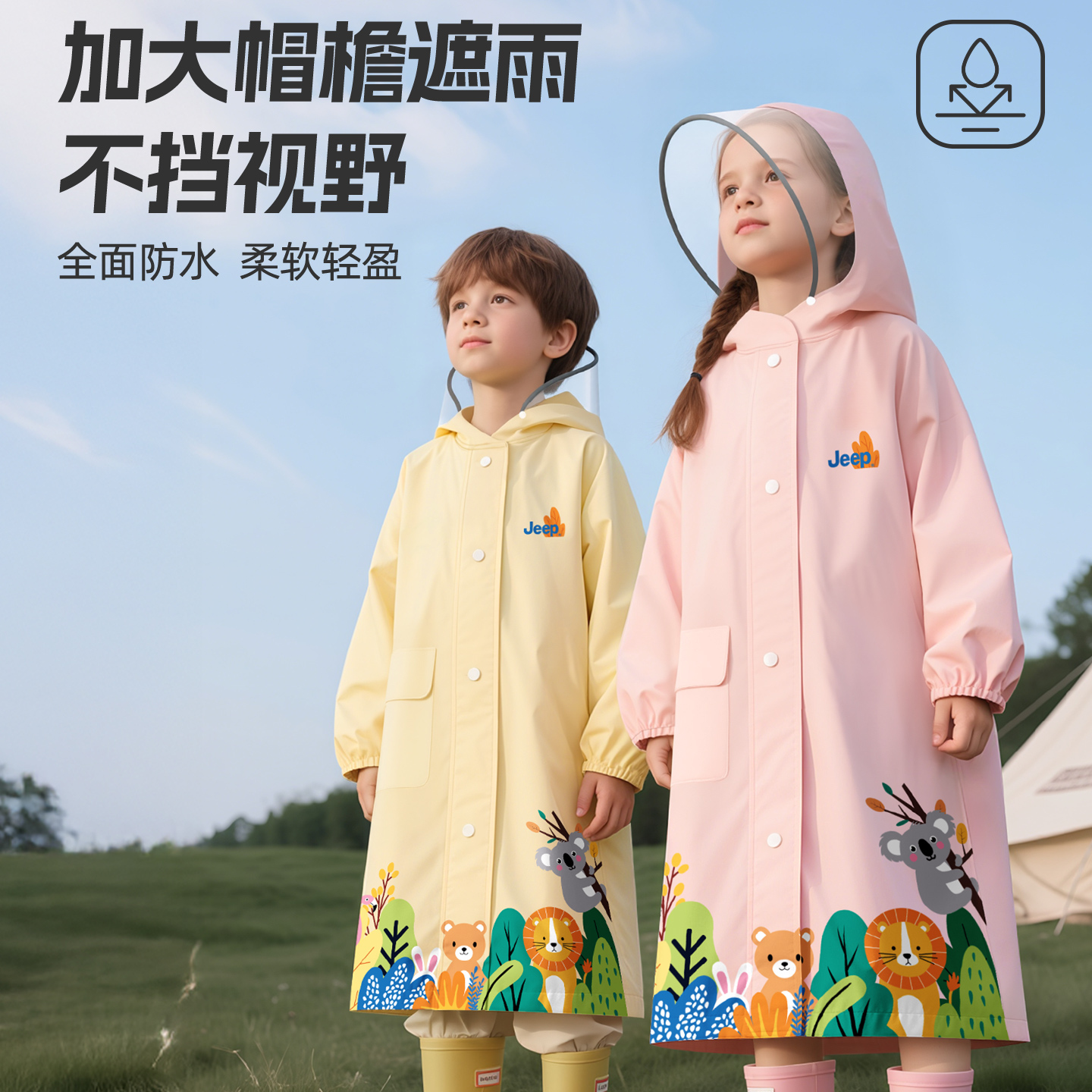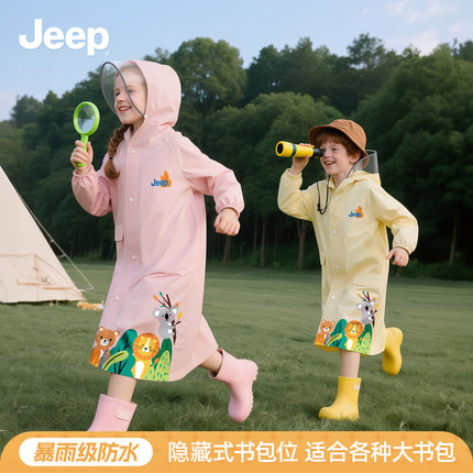 Jeep吉普儿童雨衣上学专用全身加长防暴雨幼儿园男童女童可爱雨披