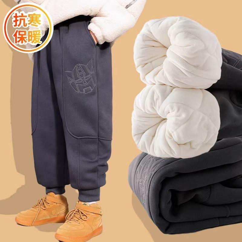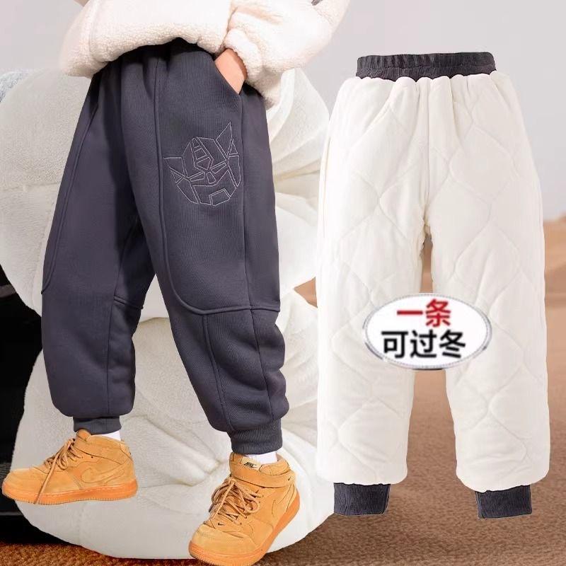 男童三层加绒加厚棉裤外穿一条过冬中大儿童女童夹棉加绒冬季裤子