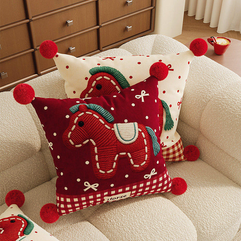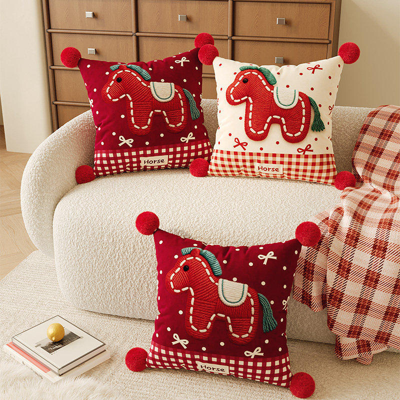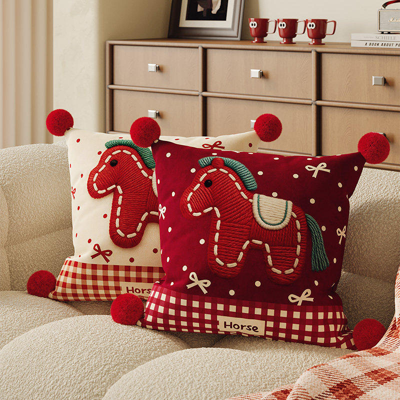 红色小马客厅沙发抱枕床头靠垫可爱含芯新年喜庆装饰飘窗靠背腰靠