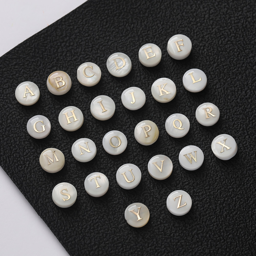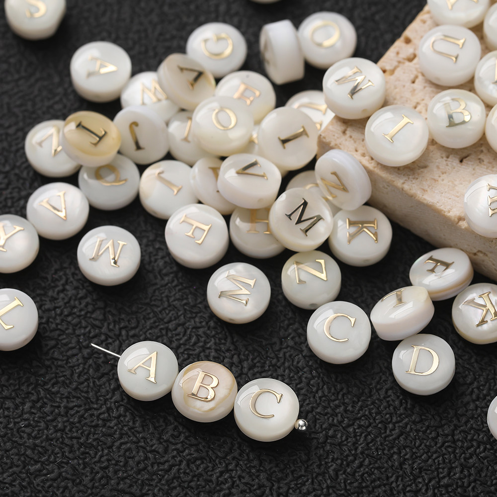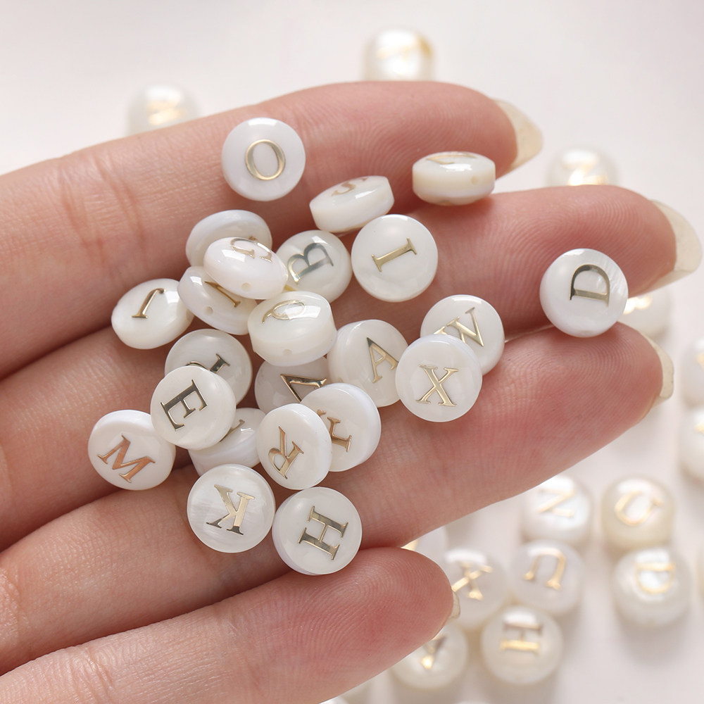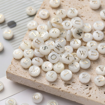 贝壳m豆滴油烫金双面英文字母珠散珠手工串珠diy手串手链饰品材料