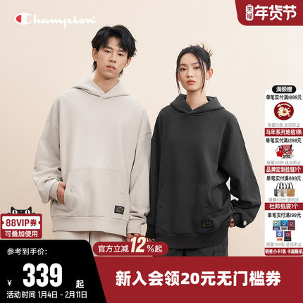 Champion冠军卫衣男冬季情侣复古户外风连帽套头休闲加绒上衣女潮