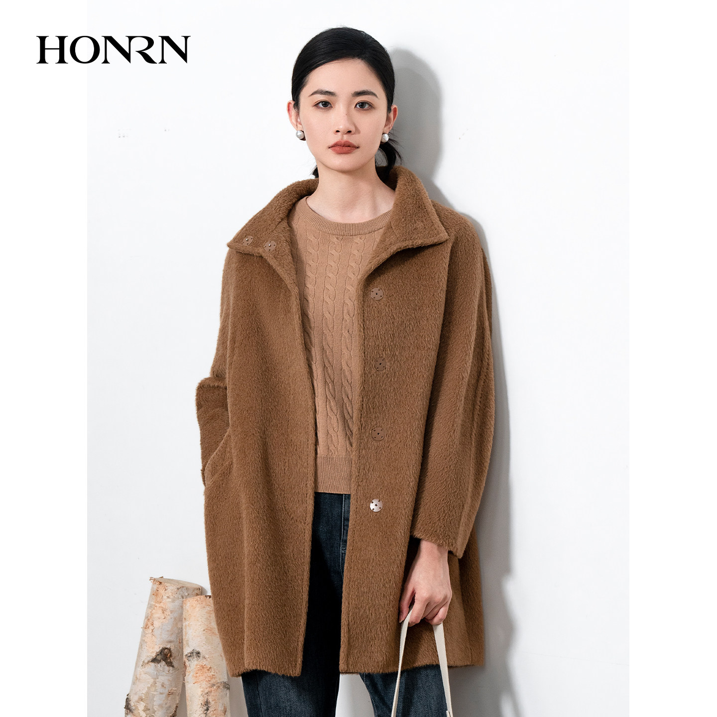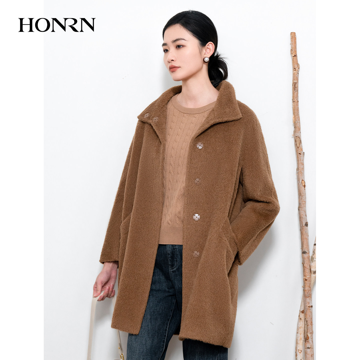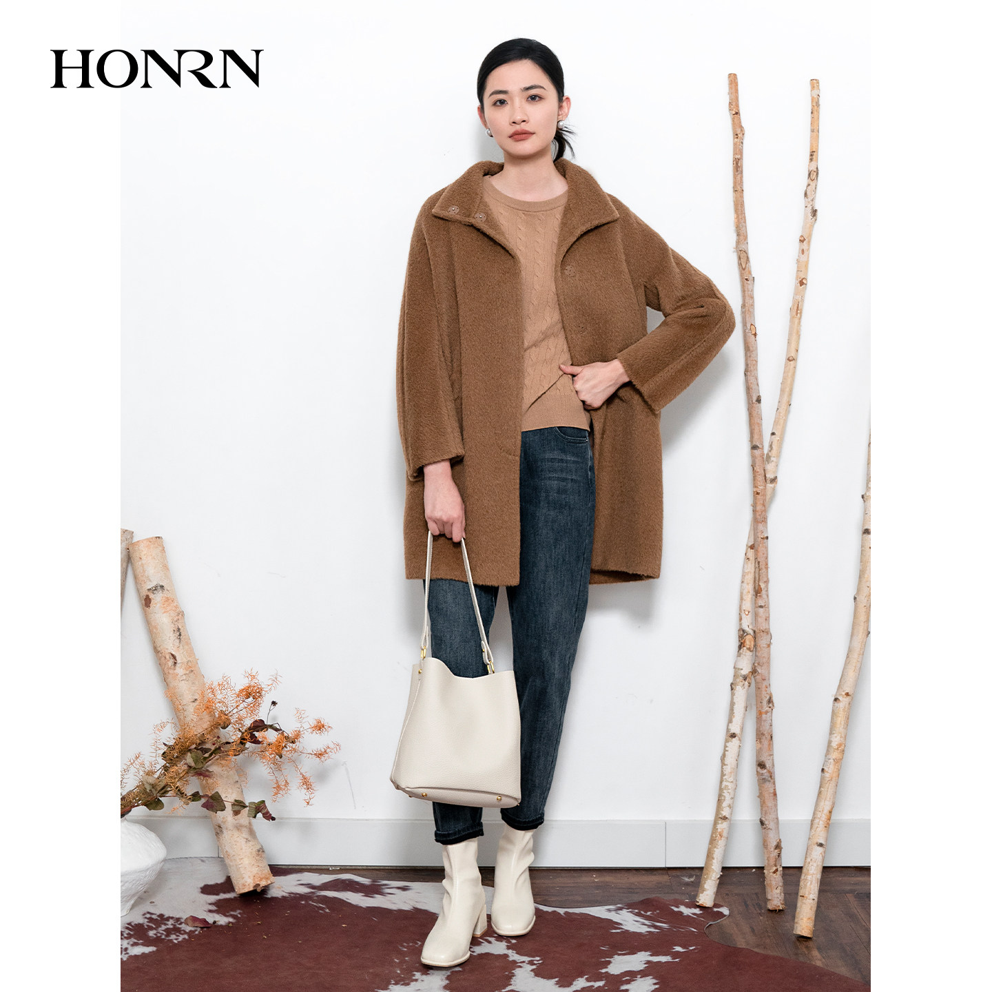 HONRN/红人立领羊驼毛羊毛呢子大衣外套女秋冬中长款HI55OD018