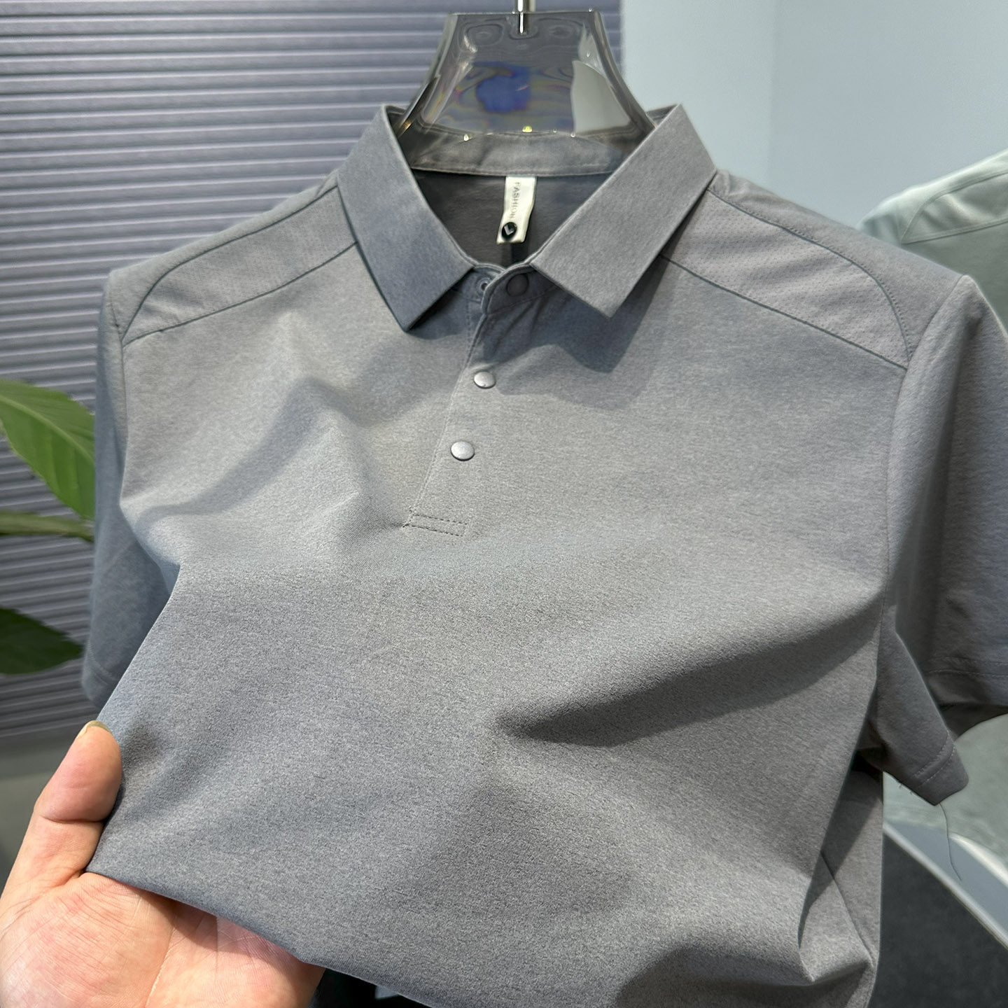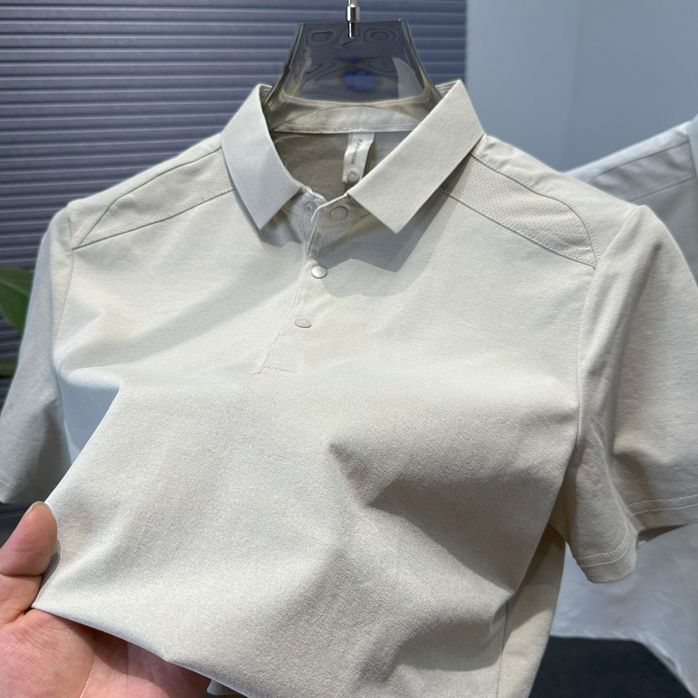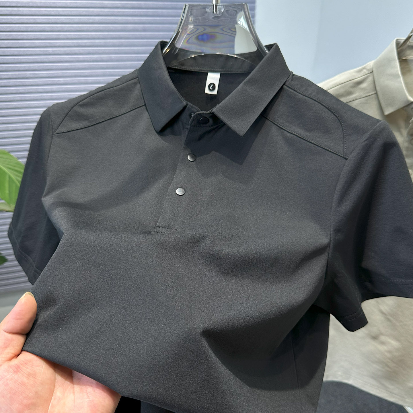 拼接纯色短袖翻领t恤男