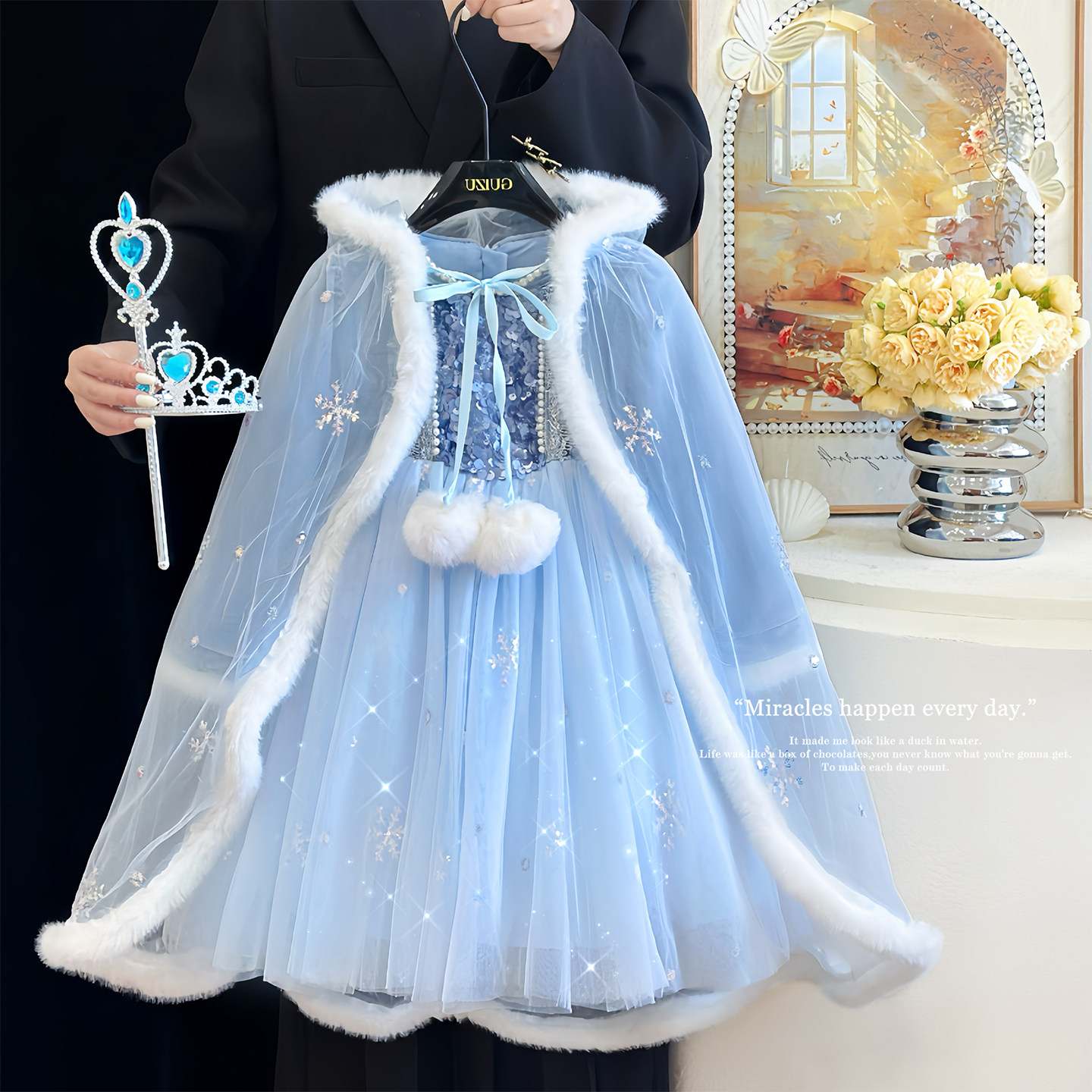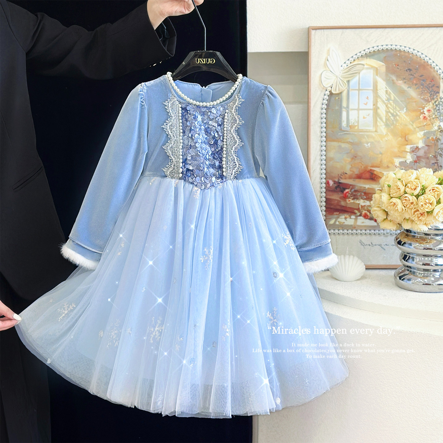 女童爱莎公主裙秋冬款儿童艾莎裙子冰雪奇缘加绒连衣裙生日礼服裙