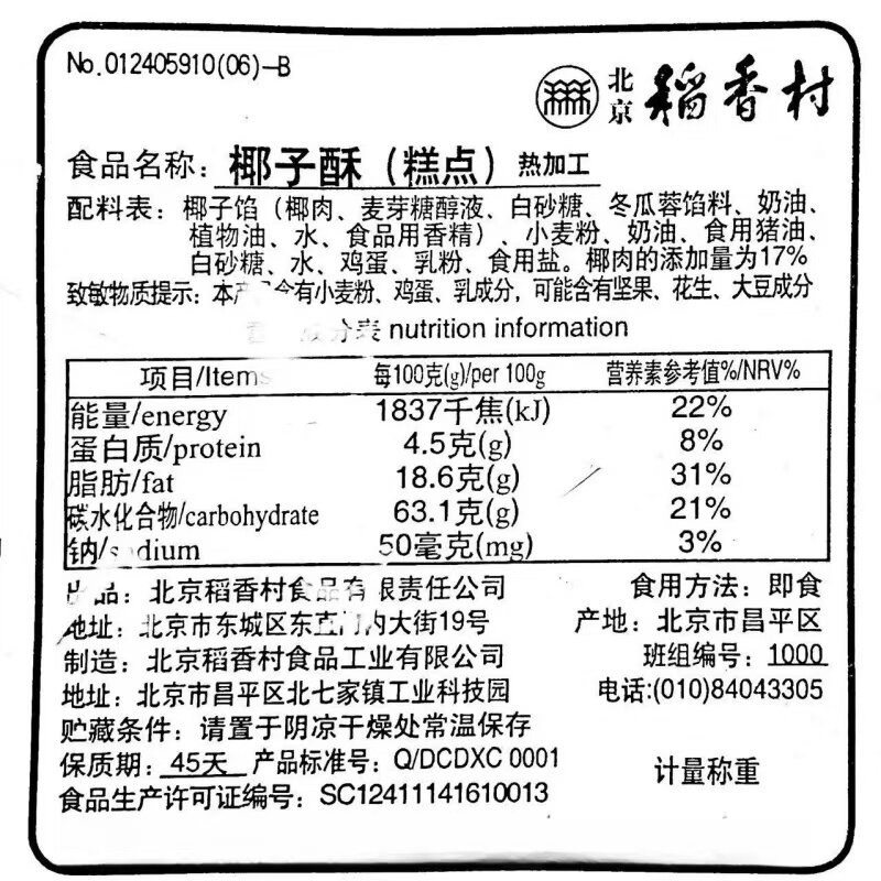4块三禾北京稻香村糕点点心椰子酥零食特产散装点心满50元包邮