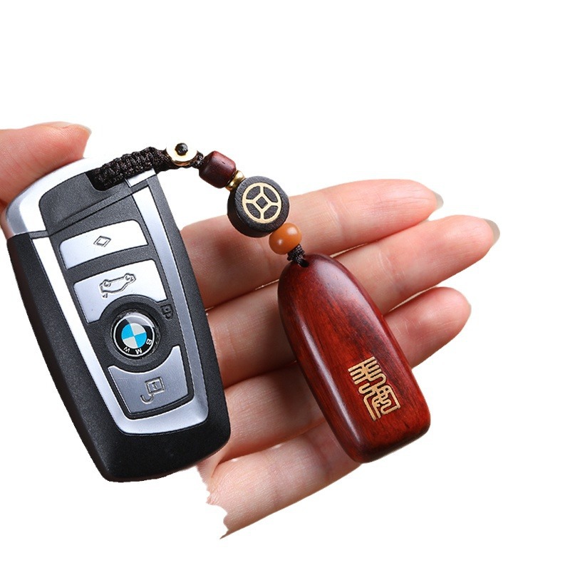 紫檀木汽车钥匙挂件平安无事牌男女手工个性钥匙扣高档复古挂