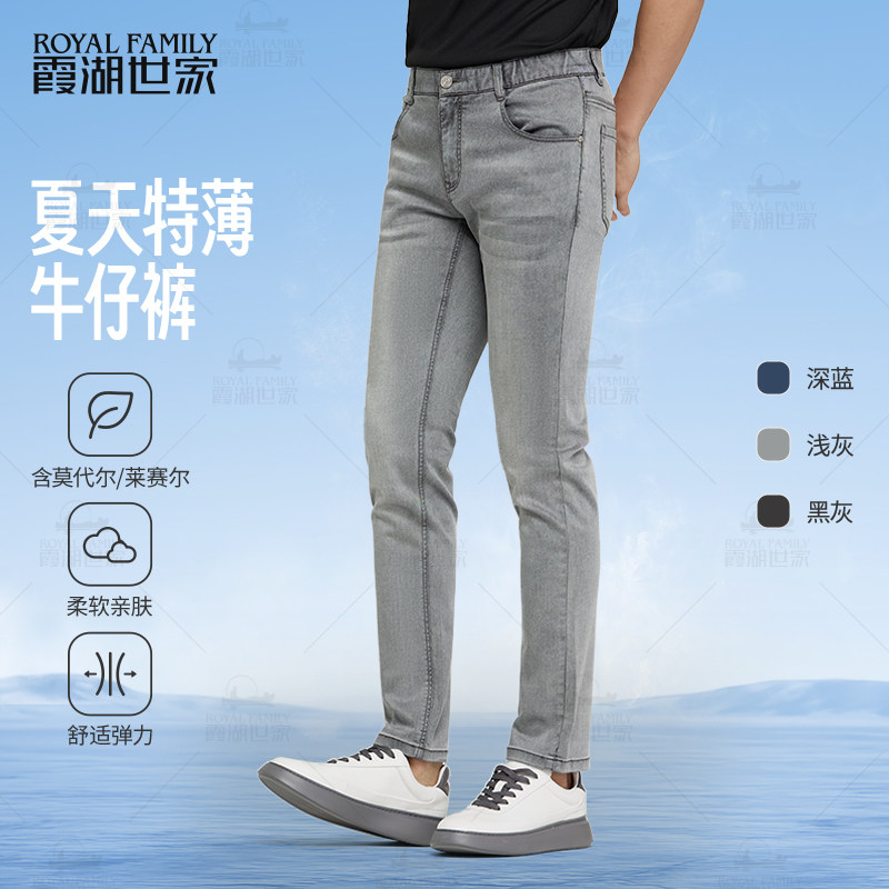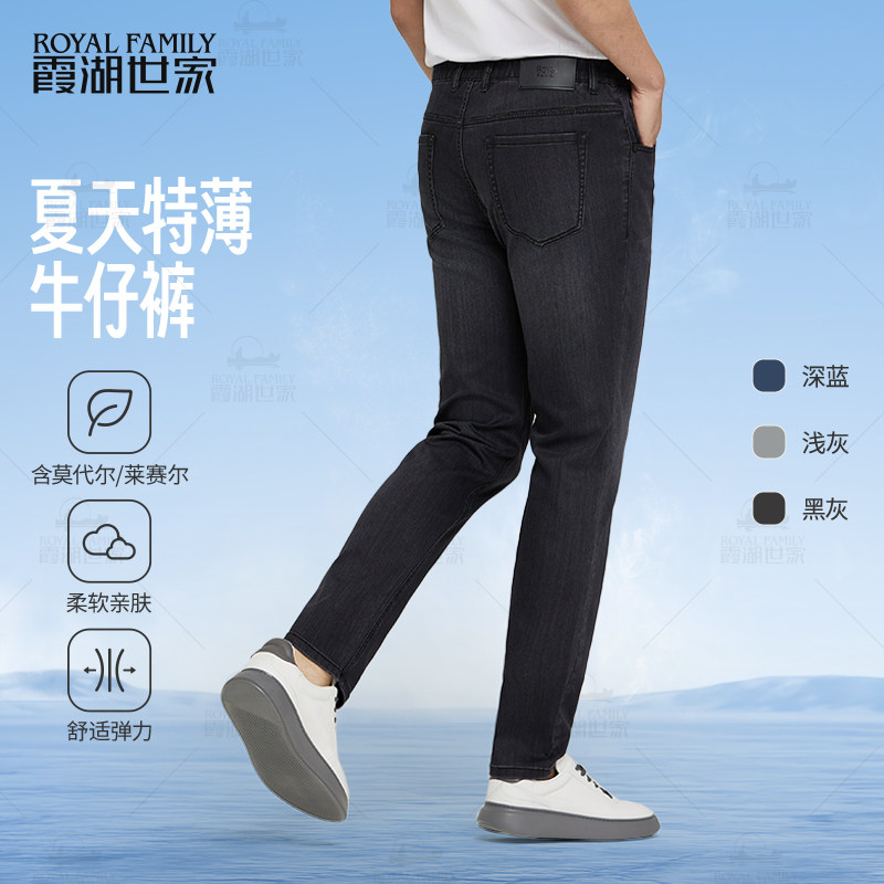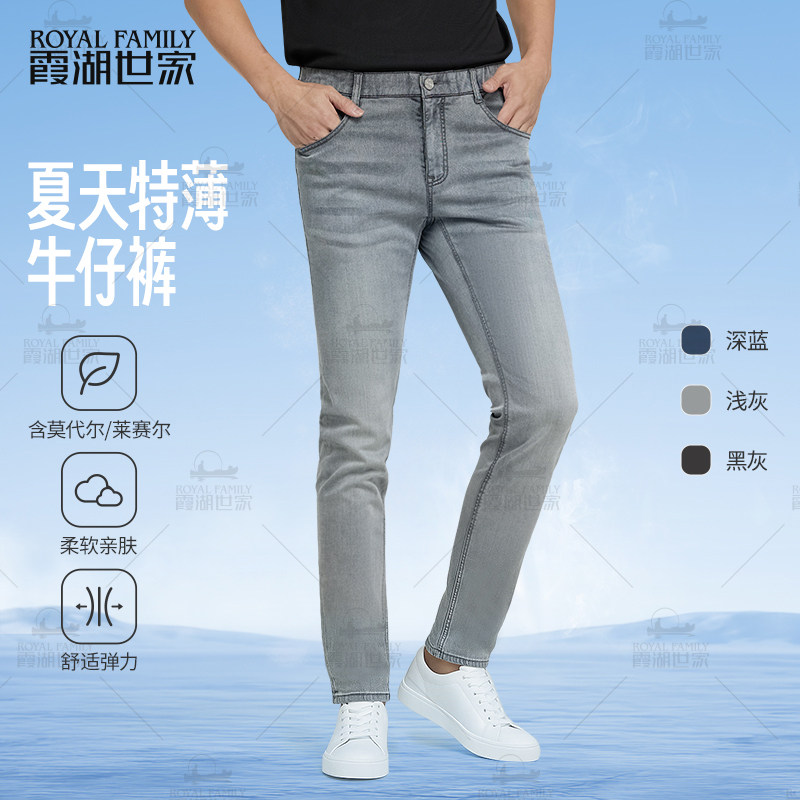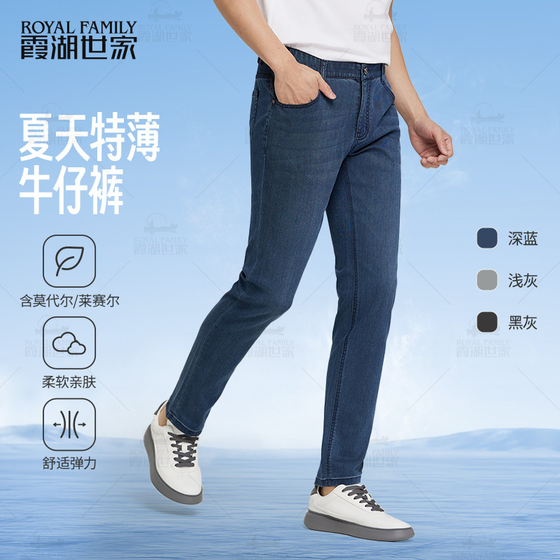 【莫代尔高弹牛仔裤】霞湖世家休闲裤男夏季轻薄耐磨九分长裤187