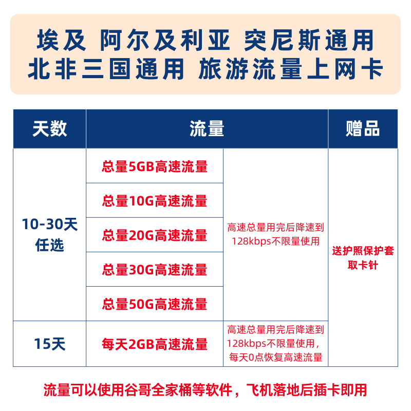 埃及电话卡 突尼斯 阿尔及利亚通用高速流量手机卡插卡即用上网卡