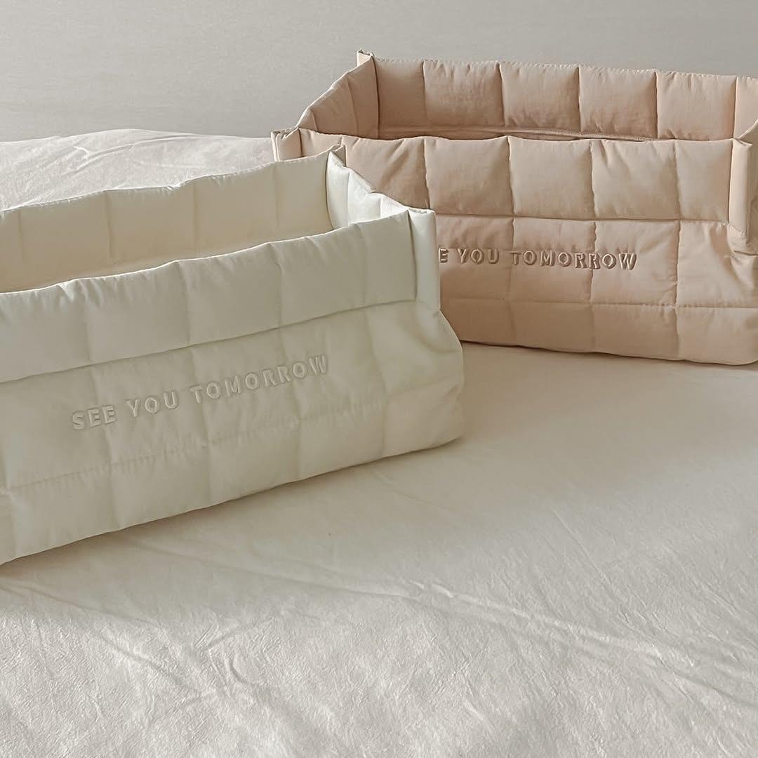 韩国ins婴儿床上尿布湿收纳盒尿布纸尿裤筐宝宝用品绗缝收纳神器