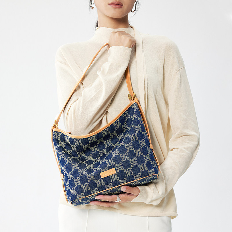 【博主同款】万里马丹宁HOBO包女大容量托特包通勤单肩水桶包