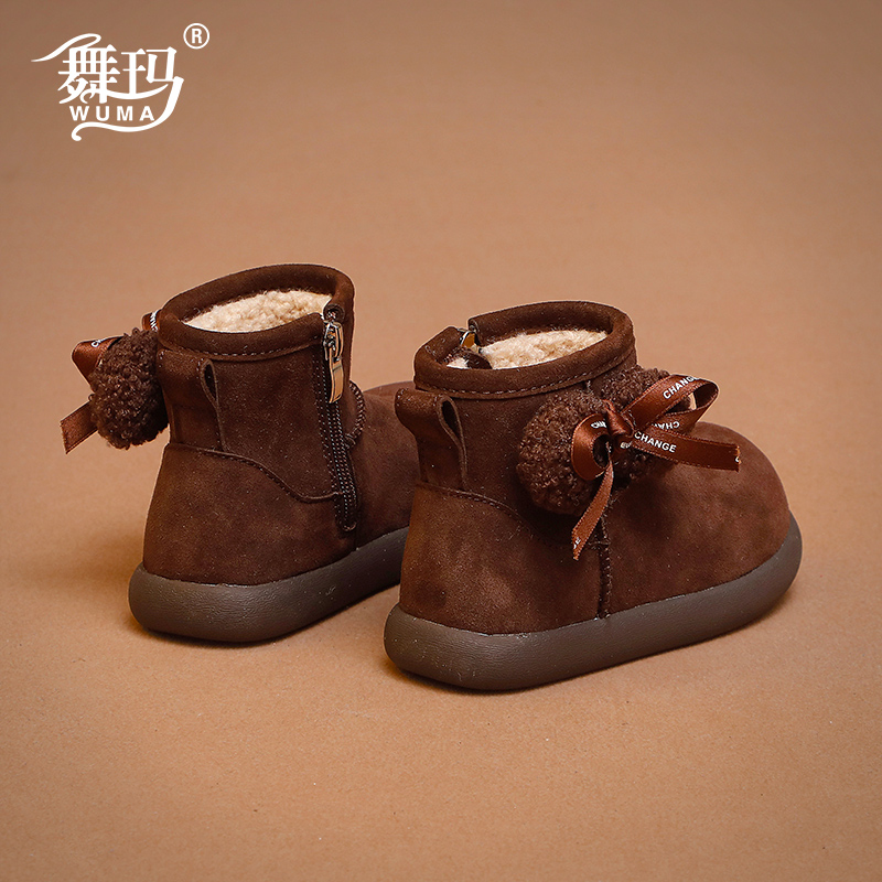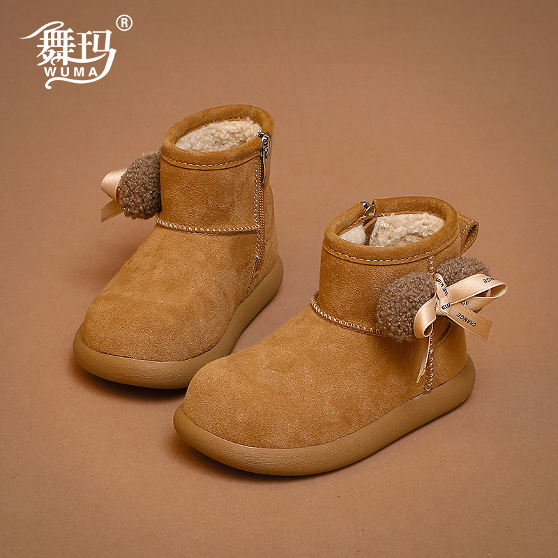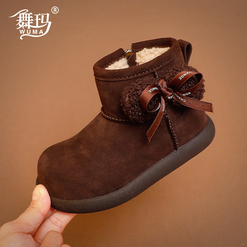 舞玛女童鞋子儿童雪地靴2025新款冬季小女孩加绒公主保暖大棉鞋子