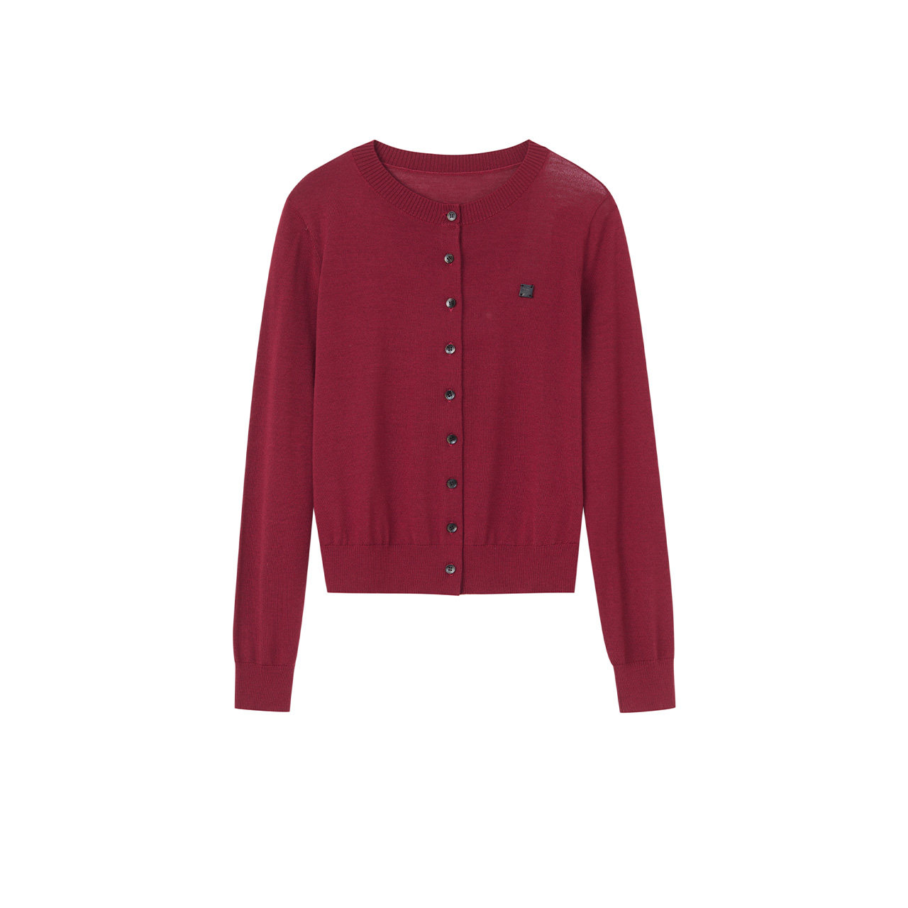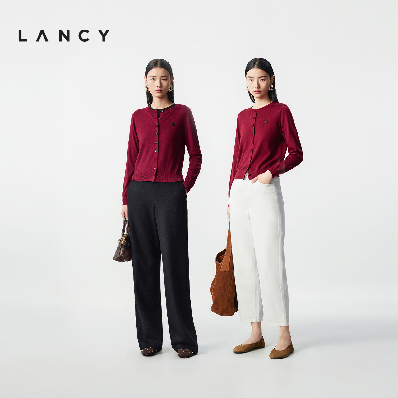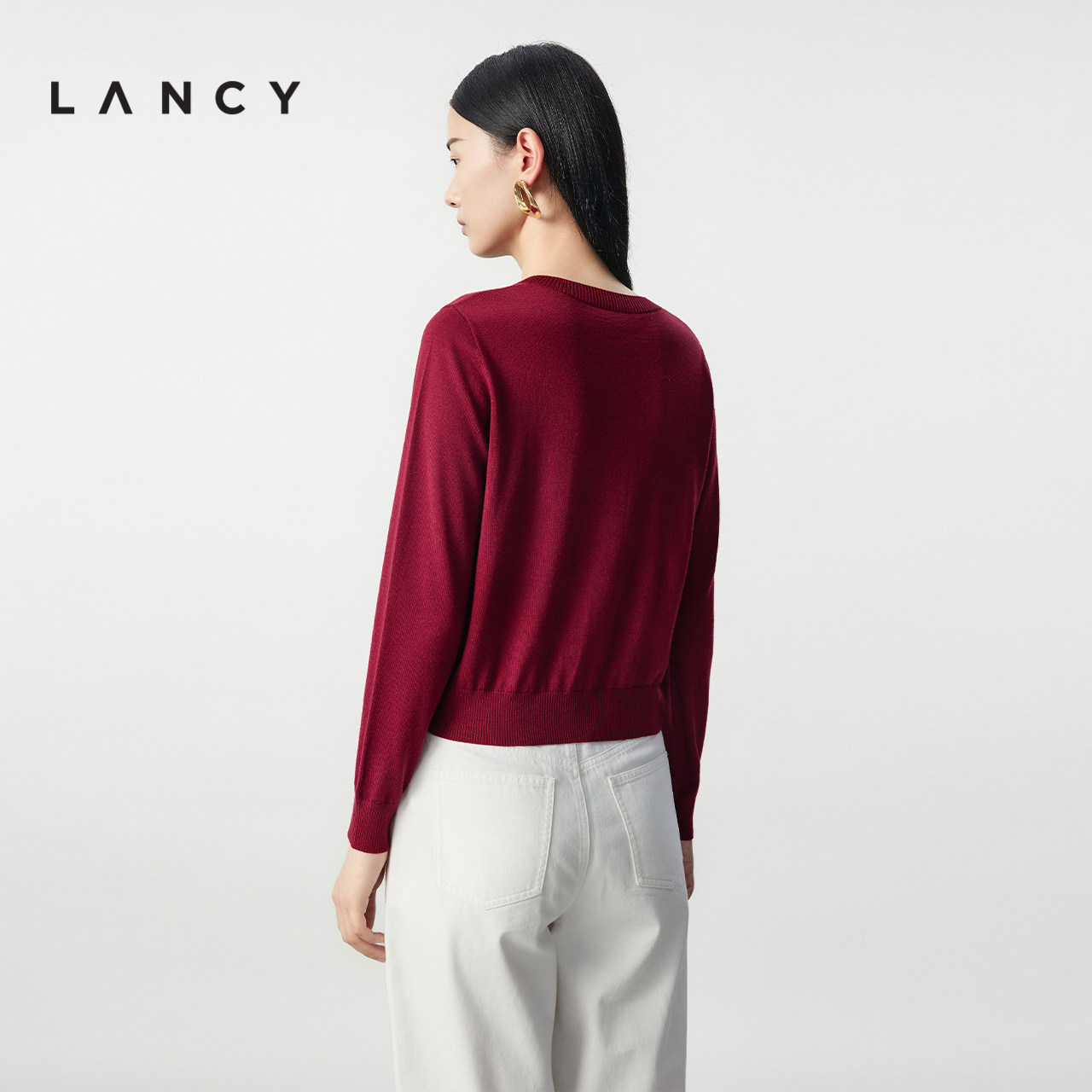LANCY/朗姿2025冬新款气质高级感丝毛针织开衫圆领修身红色上衣女