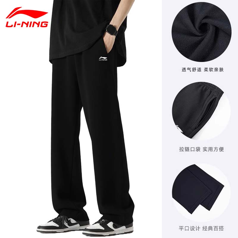 李宁薄款宽松卫裤男秋季新款潮牌透气阔腿运动青少年休闲大码裤子