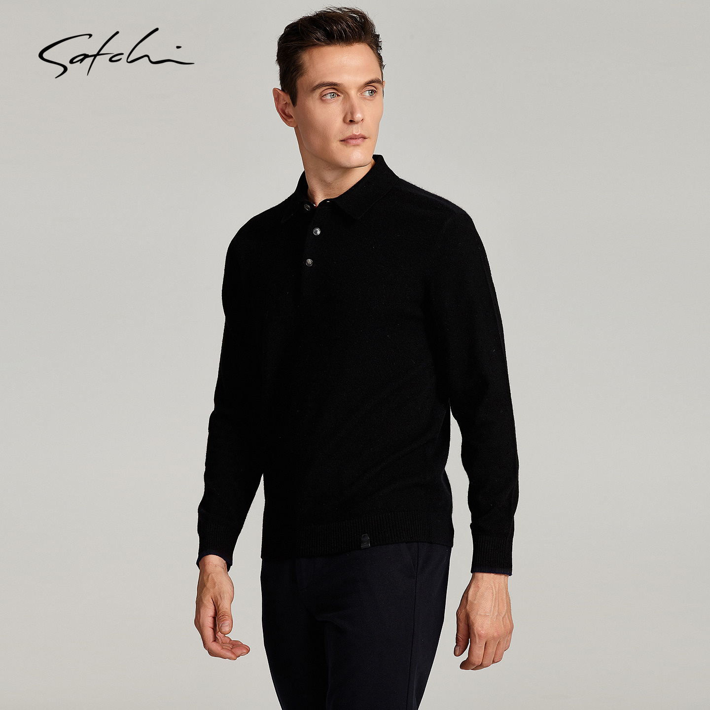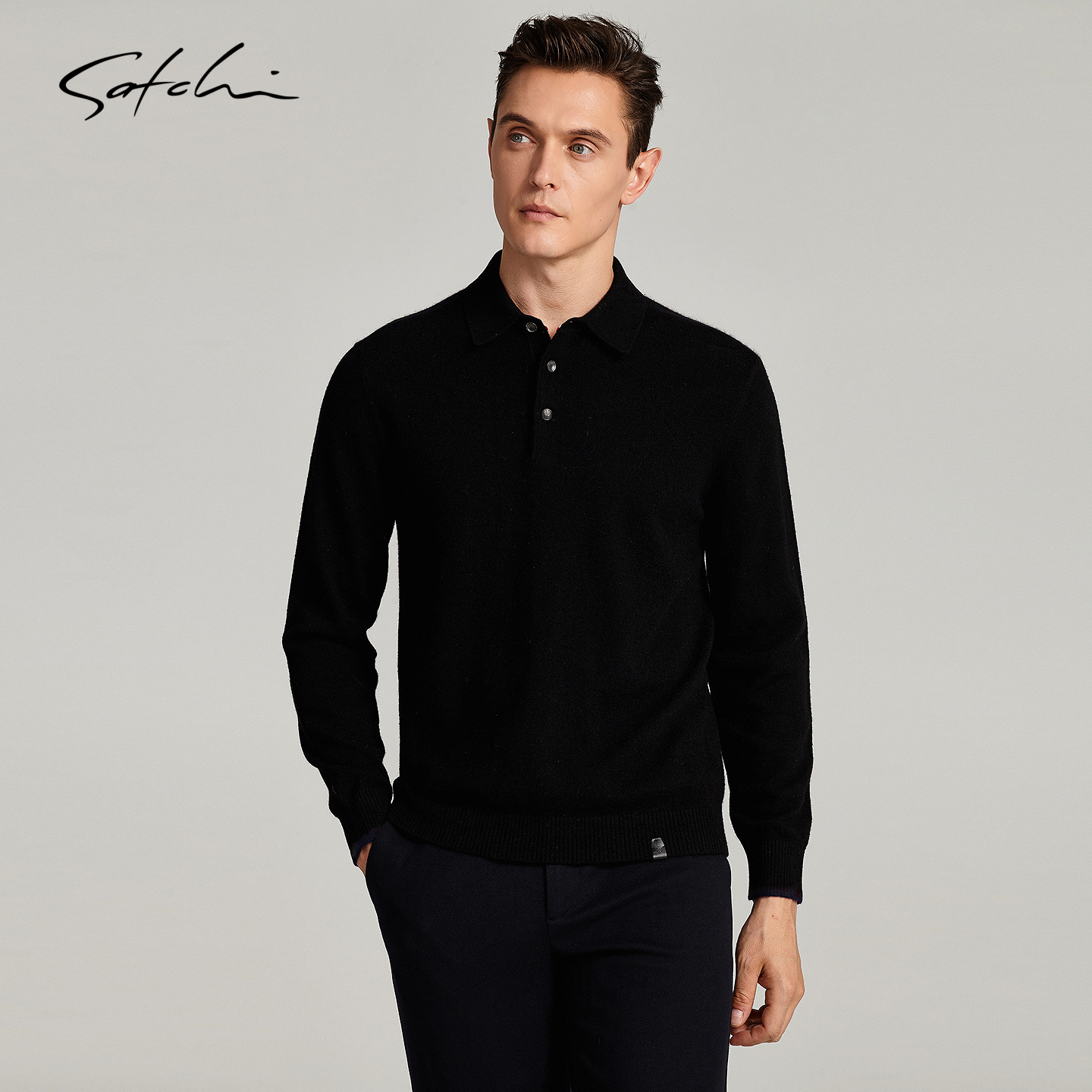 SATCHI沙驰男装男士POLO羊绒衫秋季新款羊毛商务高端保暖毛衣