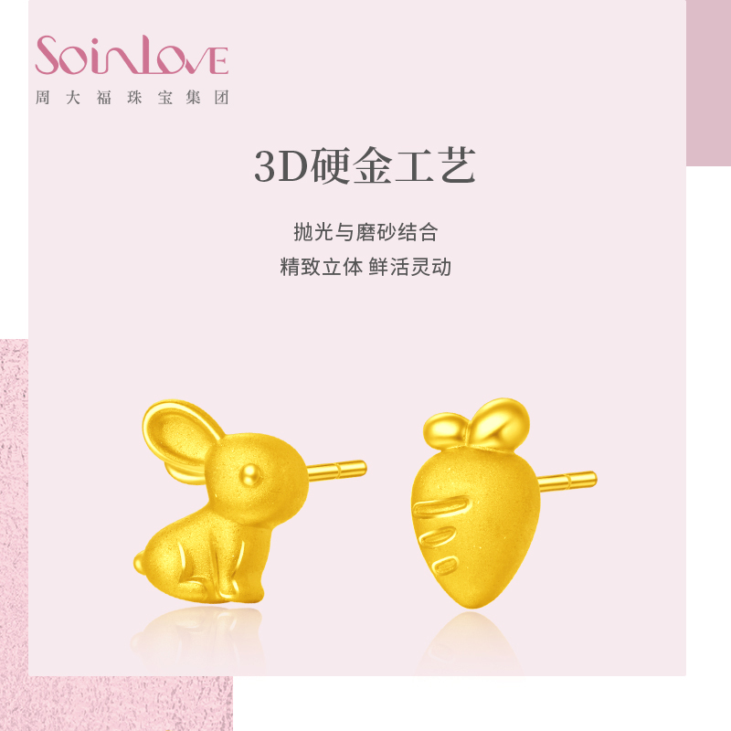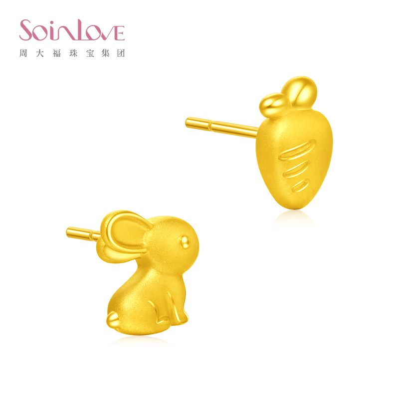 周大福SOINLOVE萌宠兔子胡萝卜黄金耳钉足金耳环女圣诞礼物