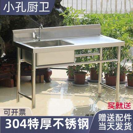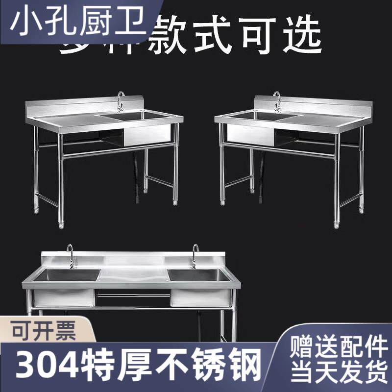 304不锈钢水槽厨房支架商用饭店洗衣台洗菜盆洗碗池带平台洗刷盆