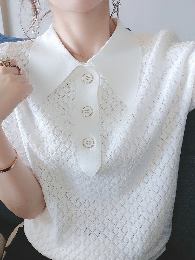 法式高级感气质针织短袖女夏温柔白色polo衫冰丝上衣百搭翻领T恤