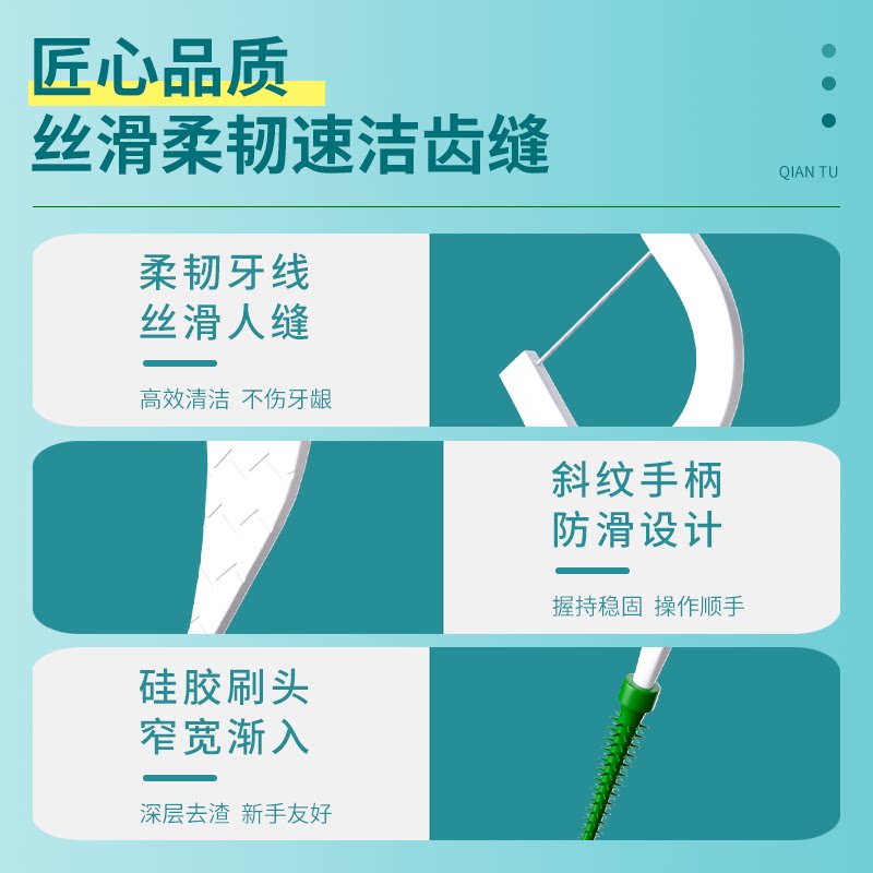 二合一多功能牙线棒高弹力牙线尾部舒适软胶牙缝刷大牙缝正畸人士