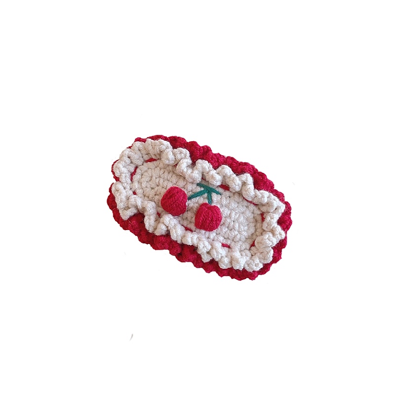 儿童唯美成品毛线花朵发夹刘海夹边夹BB夹少女发卡樱桃橘夹子头饰