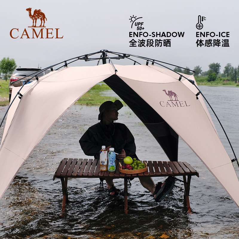 骆驼黑胶溯溪防晒沙滩帐篷海边户外天幕免搭建速开遮阳棚折叠便携