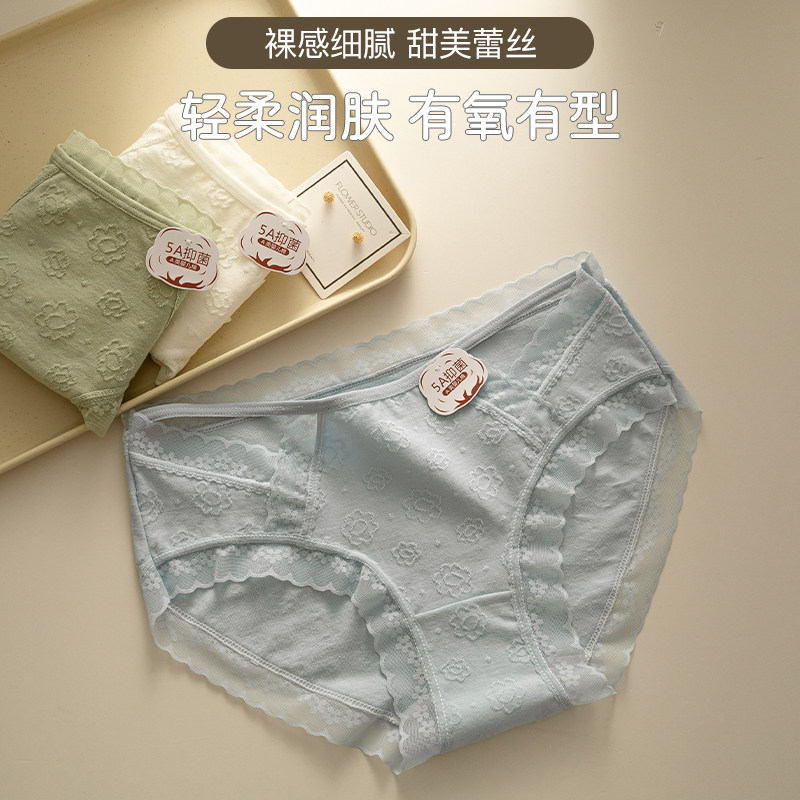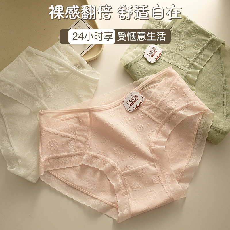 古今性感蕾丝无痕内裤女士中腰性感5A纯棉裆少女生三角短内裤透气