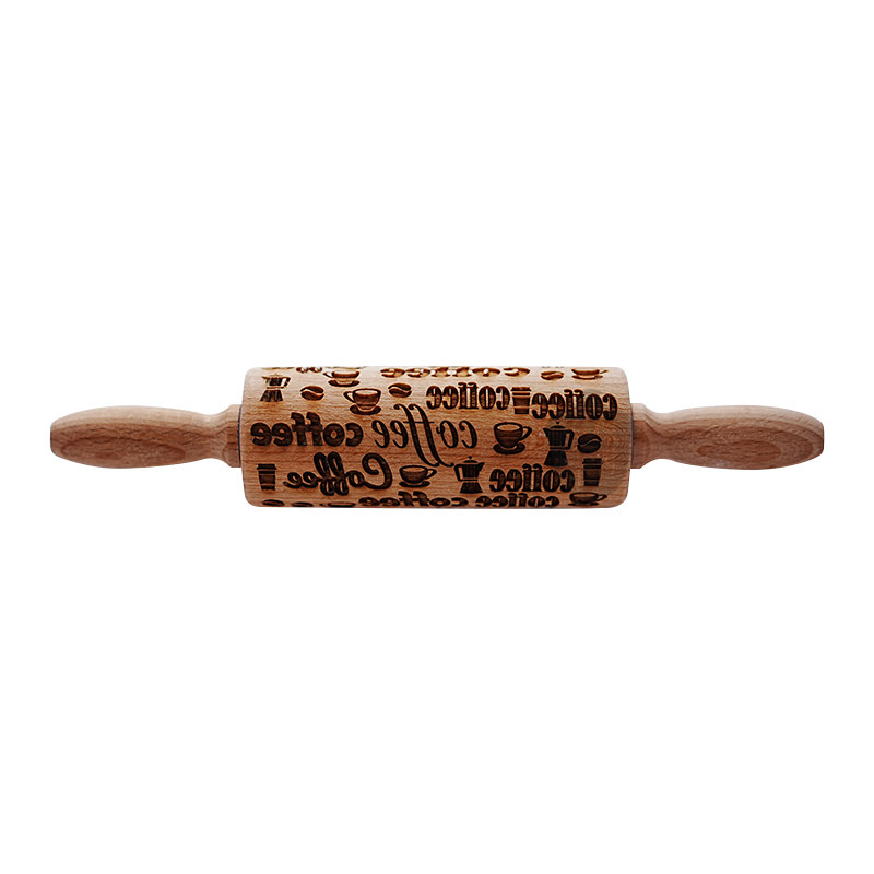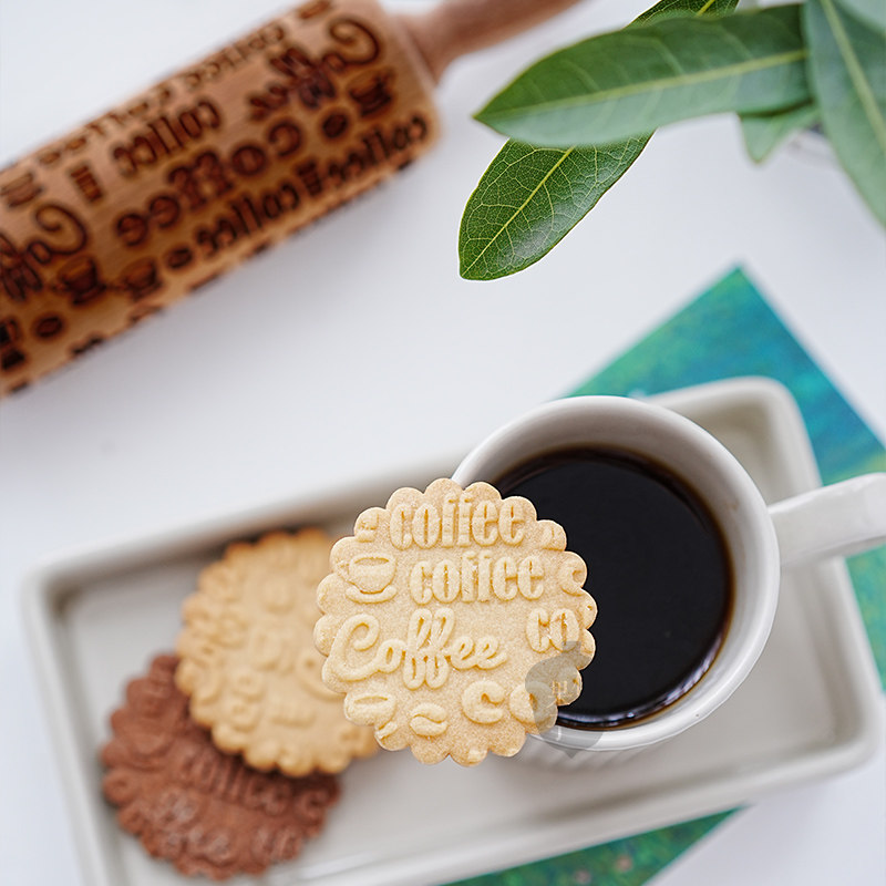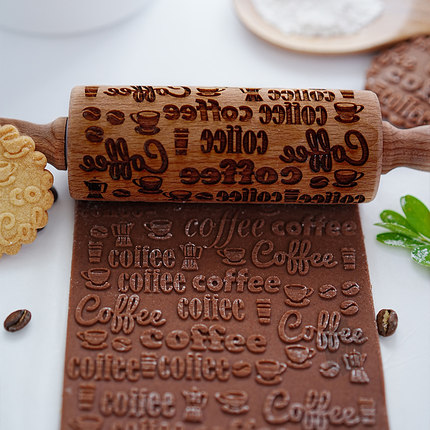 ins风立体浮雕印花饼干模咖啡饼皮擀面杖 糖牌手压雕花进口榉木模