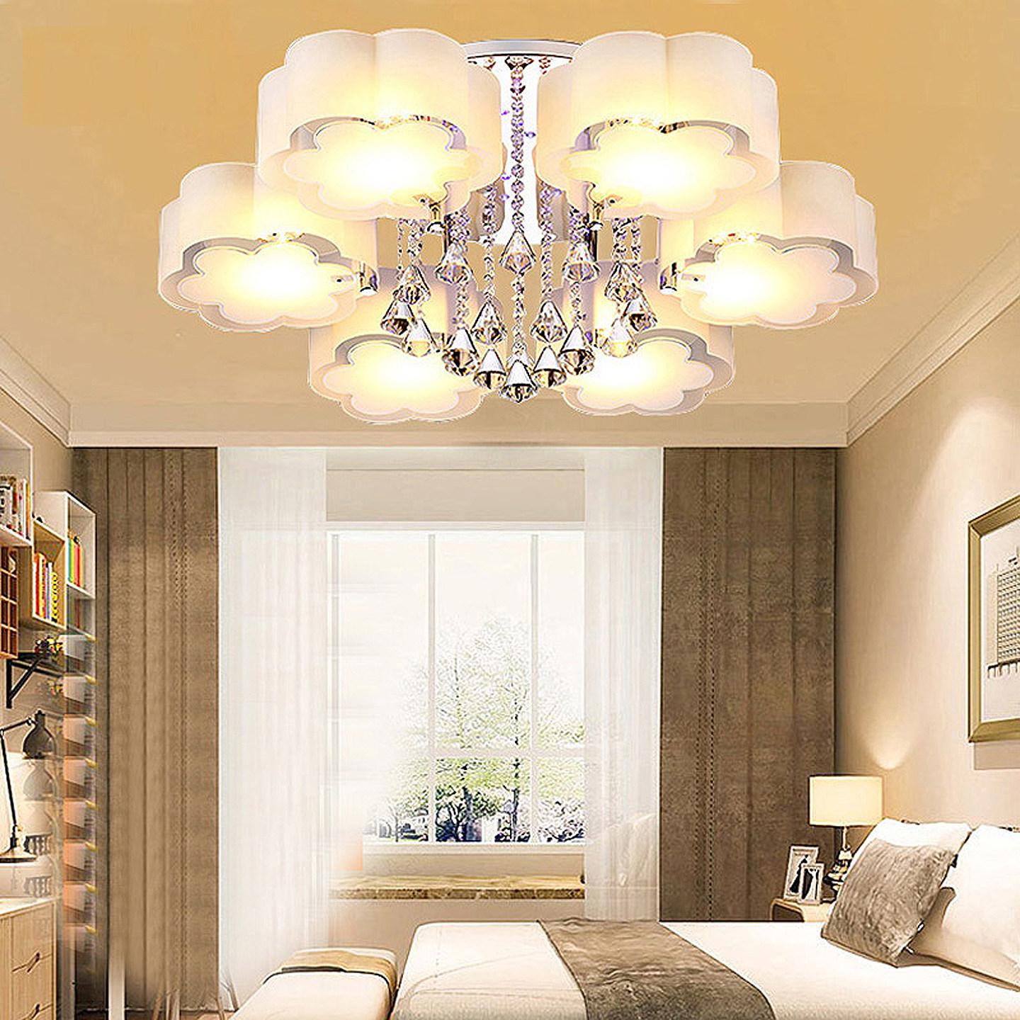 客厅灯房间主卧室灯吊灯水晶灯大气高级感浪漫简约现代led吸顶灯
