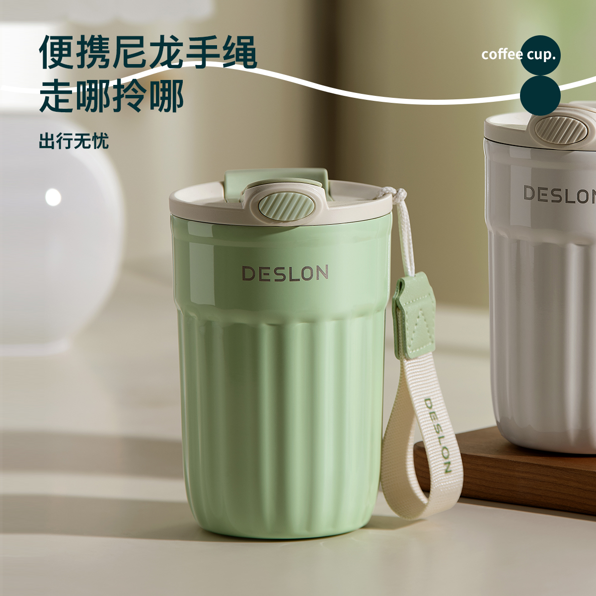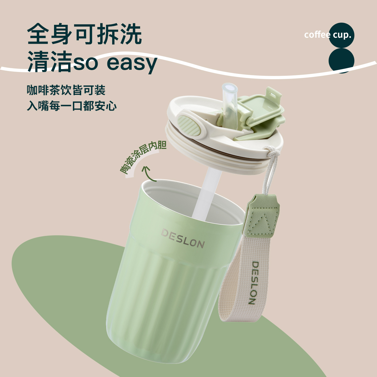德世朗保温杯女陶瓷内胆高颜值水杯小巧便携配吸管随行杯咖啡杯子