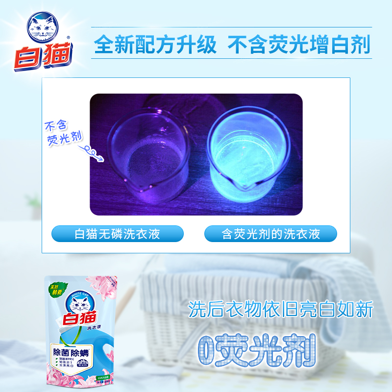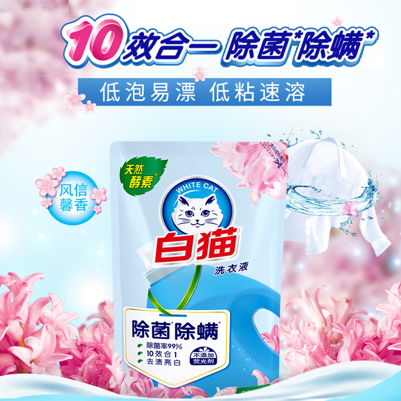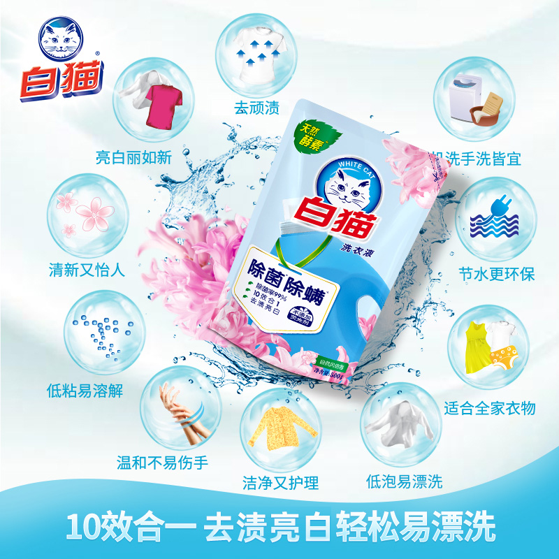 白猫无磷洗衣液袋装500g*18袋除菌除螨家用实惠装手洗机洗整箱批