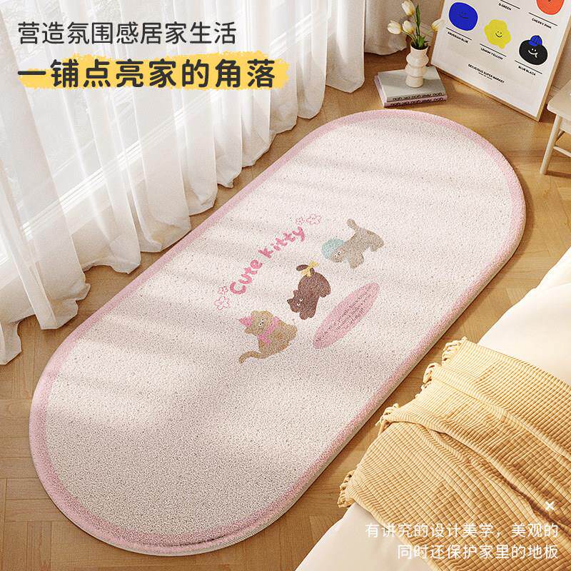 椭圆形床边毯轻奢高级感卧室地毯儿童房可爱地垫加厚防滑彷羊绒垫