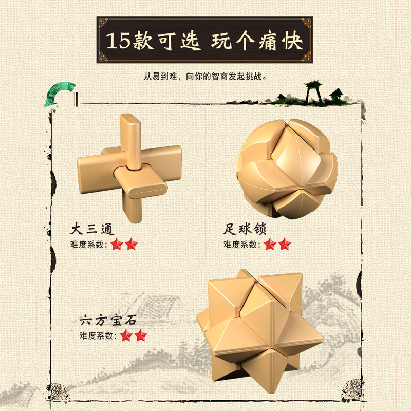 ZCUBE孔明锁鲁班锁套装儿童成年高难度解锁九连环学生益智玩具