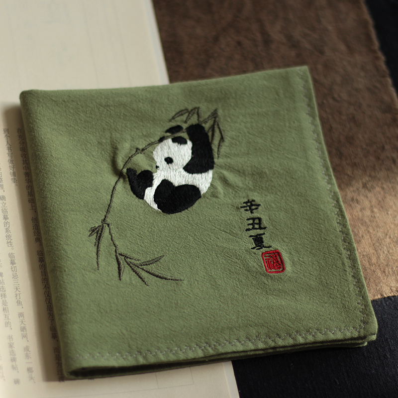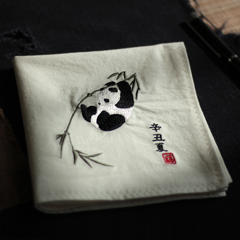 大熊猫刺绣手帕纯棉出国留学中国特色礼物送老外手绢随身吸汗方巾