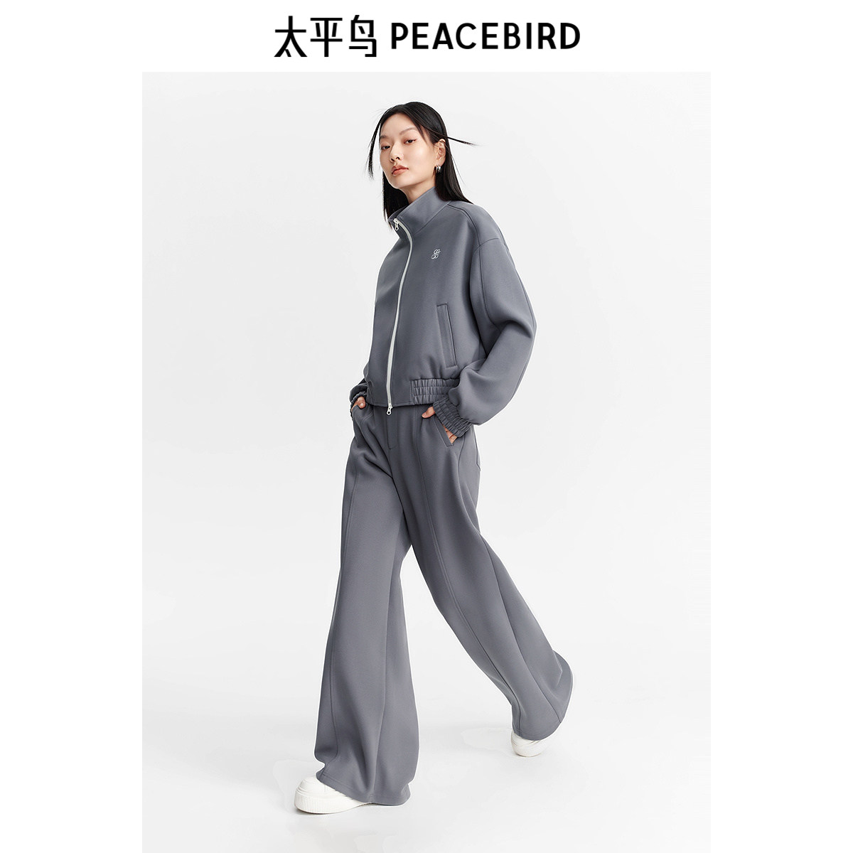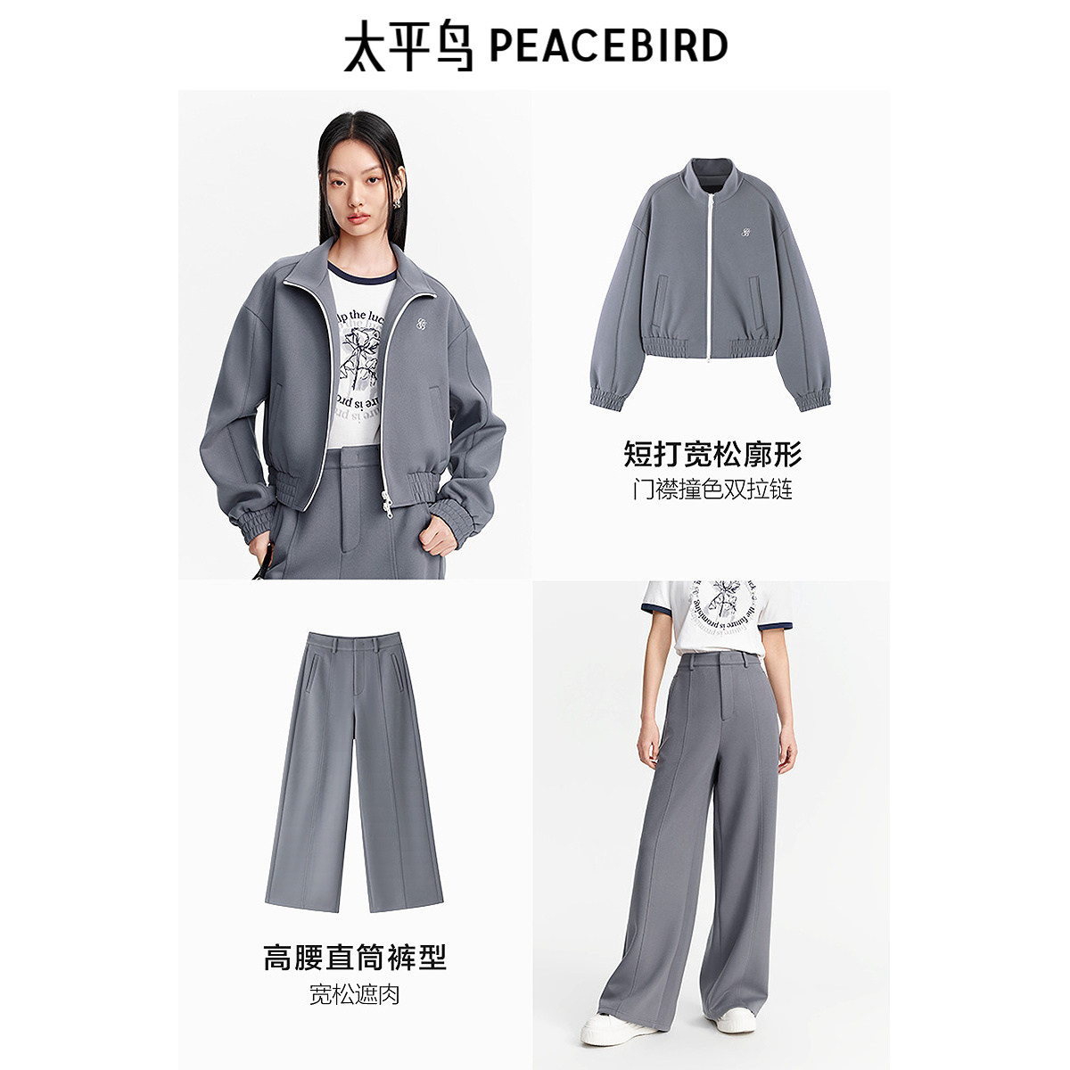 太平鸟仿麂皮绒撞色外套24年秋新款短款卫衣运动套装A7BBE339601