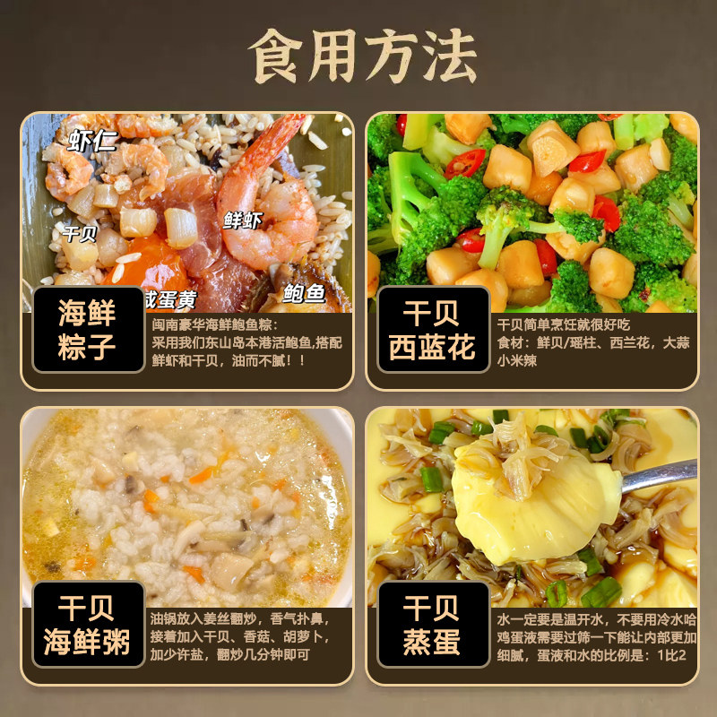 悠小渔干贝瑶柱大号250g淡晒淡干海鲜干活扇贝肉元贝拍2份500g