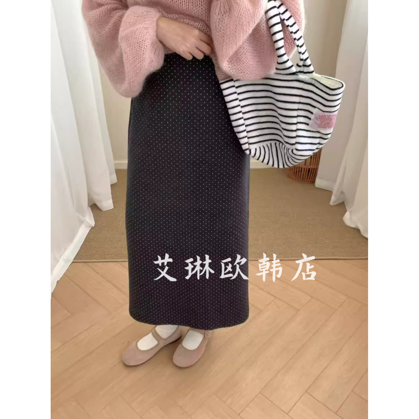 9.24~K土布鱼7090秋款波点毛呢半身裙女后开叉中长款气质包臀裙