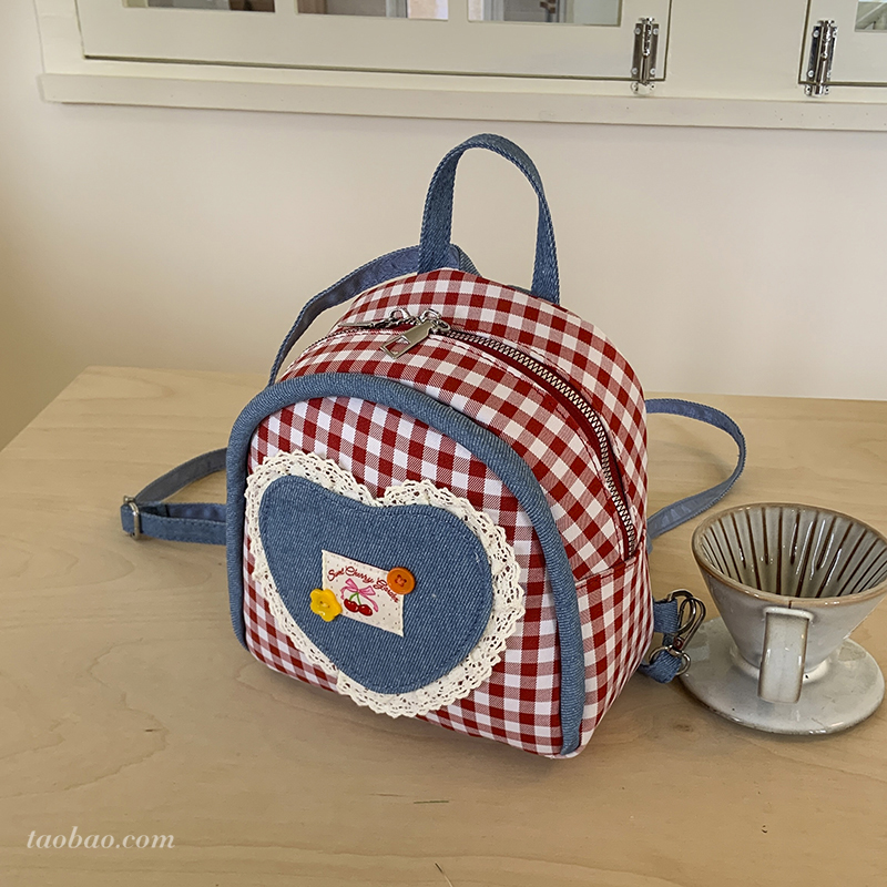 超火小众格子女式双肩包2025新款秋冬季撞色百搭后背包迷你小书包
