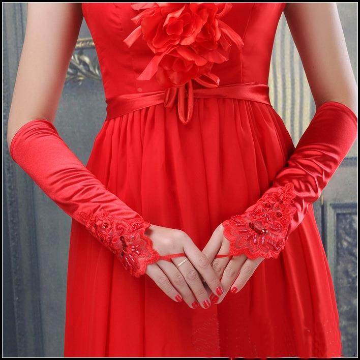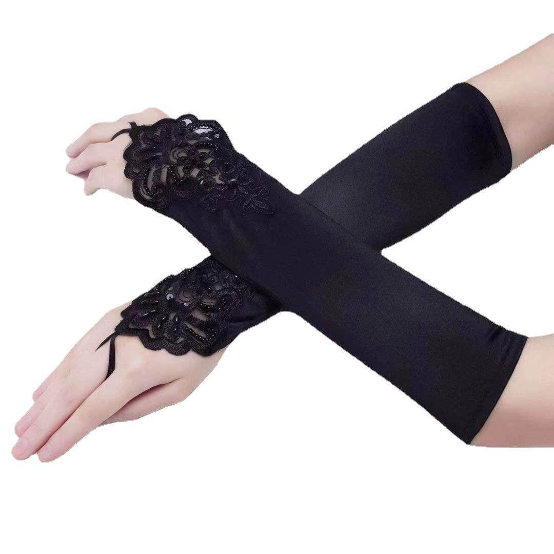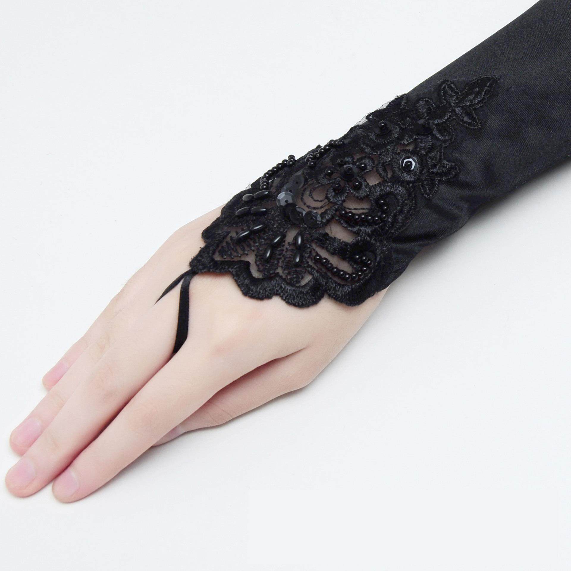 手套女冬长款手套黑色绸缎晚装宴会礼服长手套婚纱手套演出