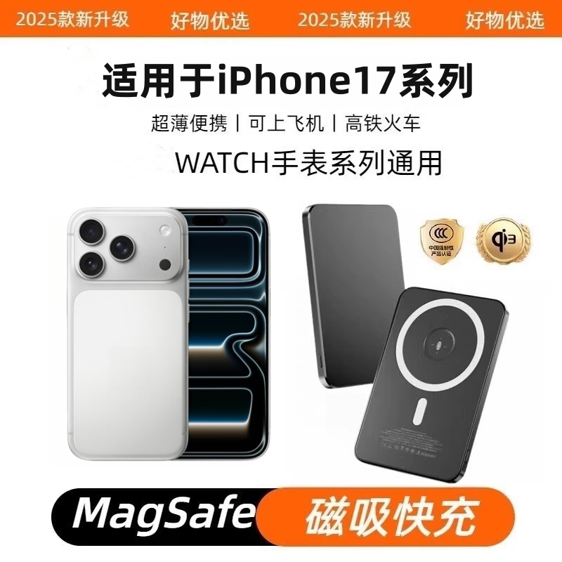 国家3C认证 适用于苹果17无线磁吸充电宝二合一多功能超薄便携外接电池大容量应急无线充电器