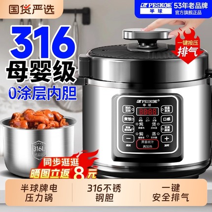 半球电压力锅316不锈钢家用升4-7人内胆无涂层多功能全自动高压锅
