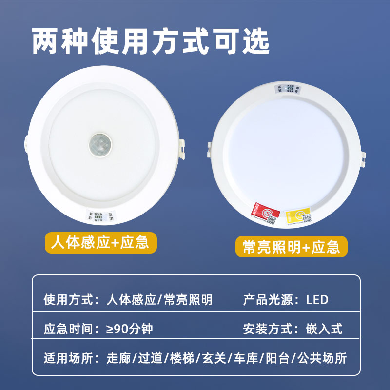 消防led筒灯嵌入式应急照明灯家用工程商用灯人体感应一体应急灯