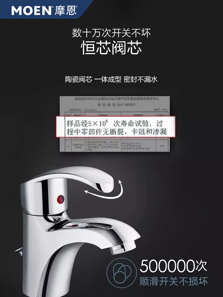 摩恩冷热面盆龙头卫生间洗手盆浴室柜台盆龙头11122 90121 10123