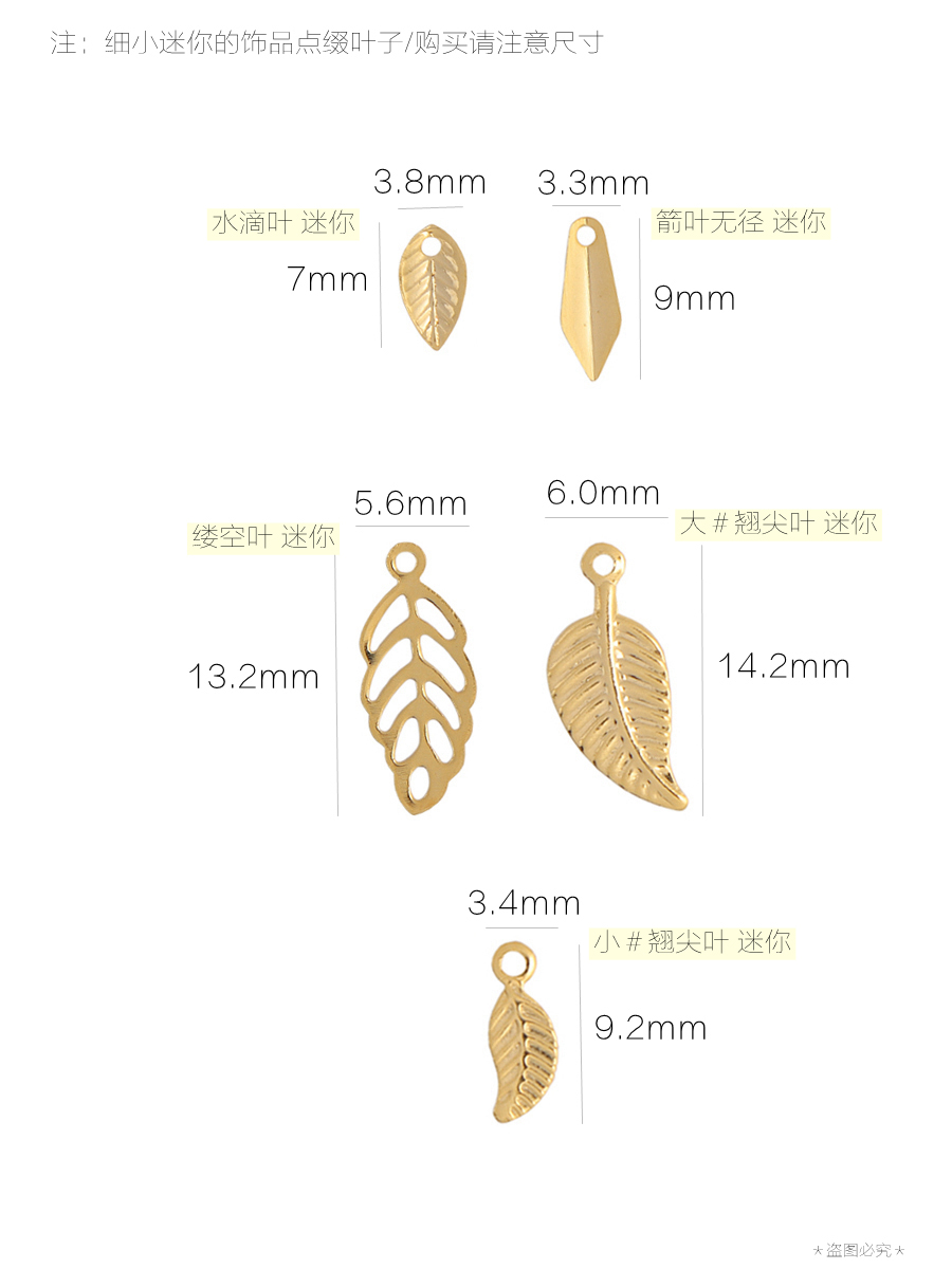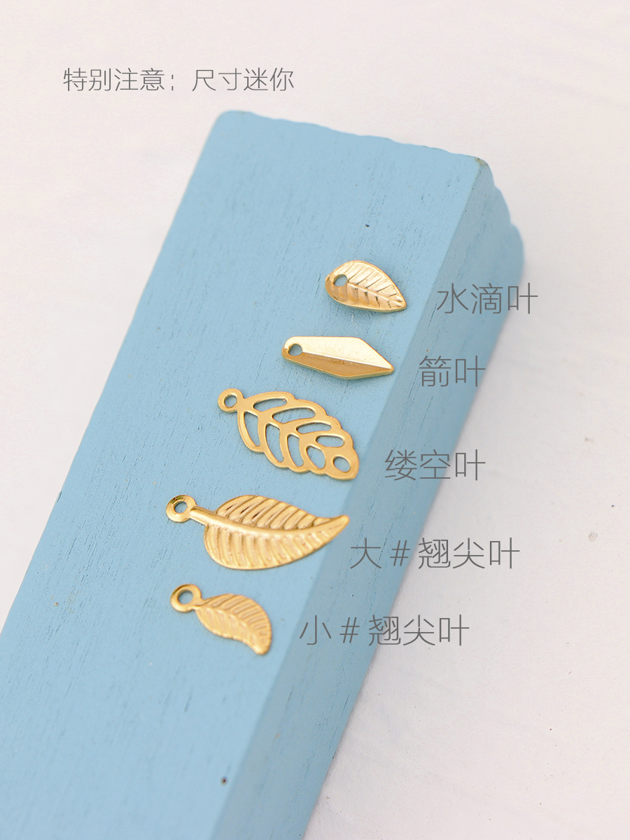 饰品用迷你小叶子diy手工材料 铜质保色电镀发饰胸针耳环手作配件
