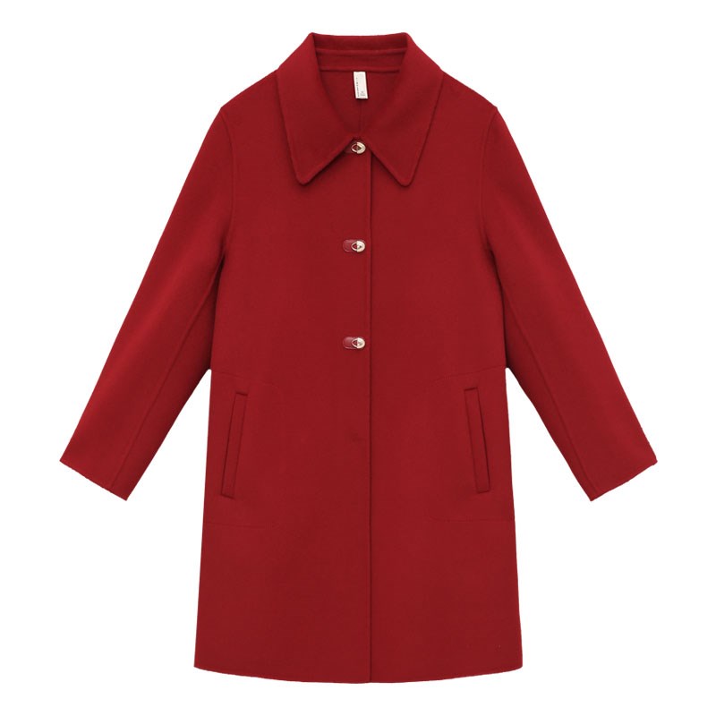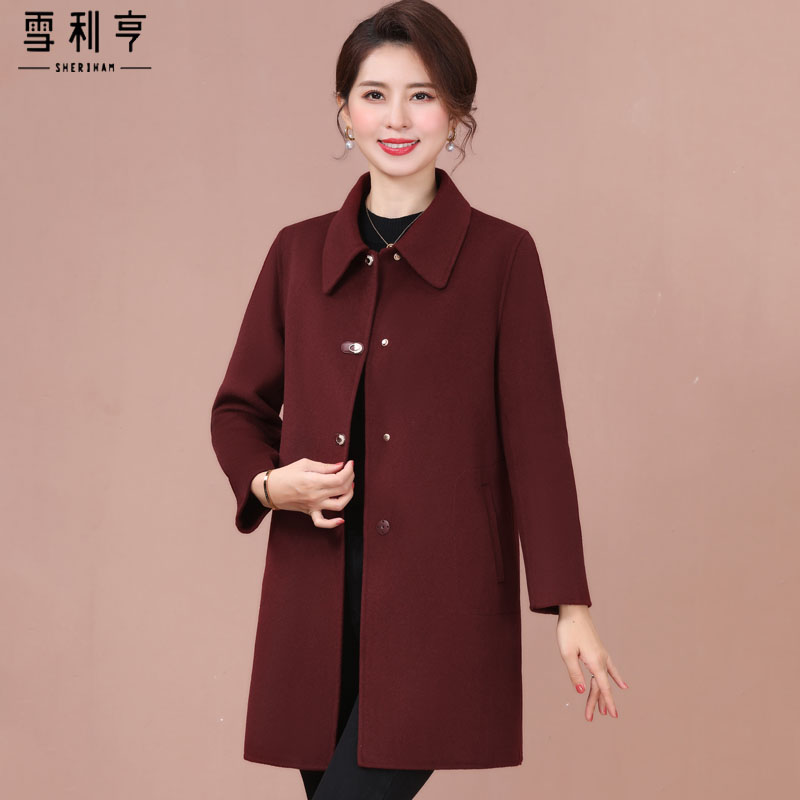 妈妈秋冬装双面羊毛呢外套中长款z40岁50岁中年女装酒红色呢子大