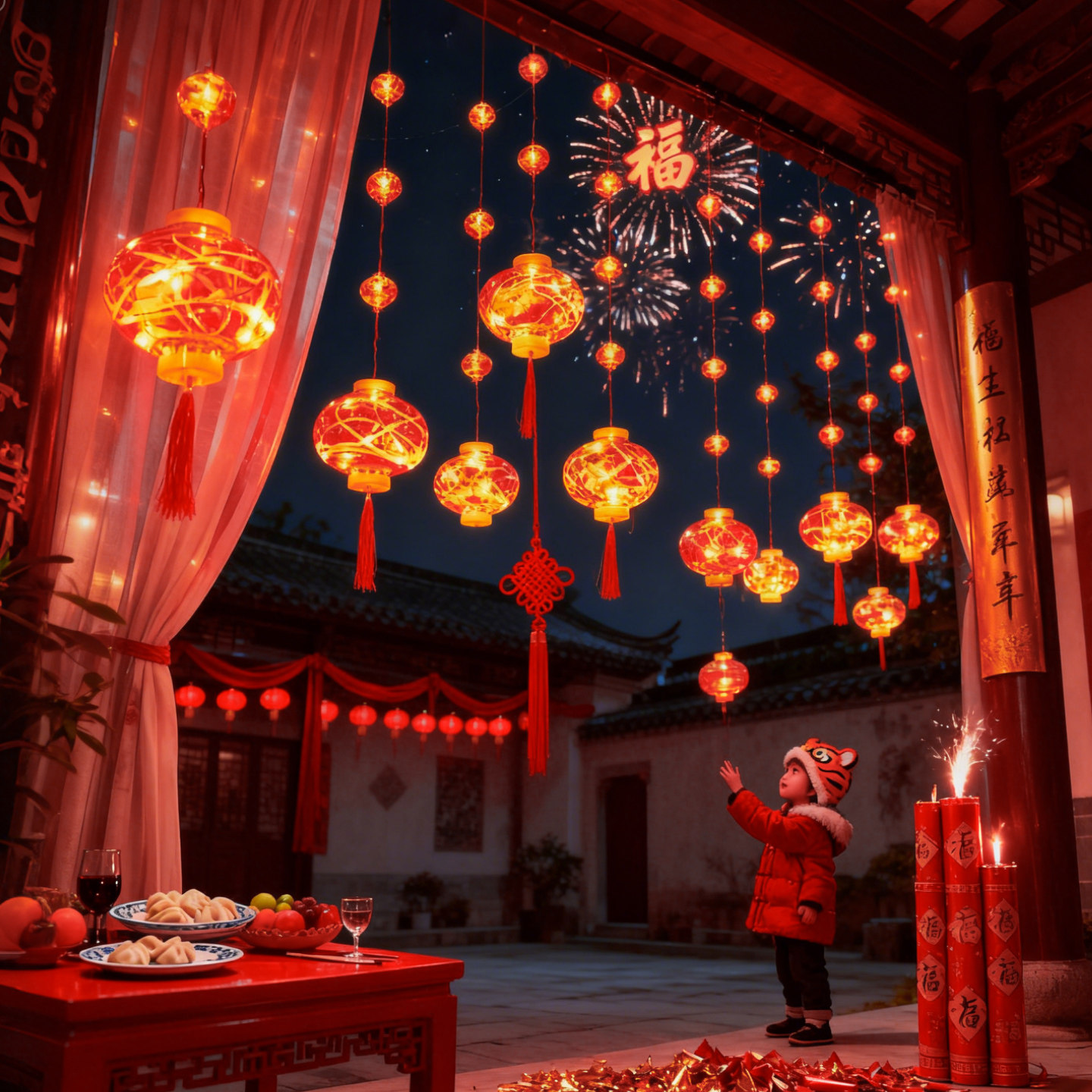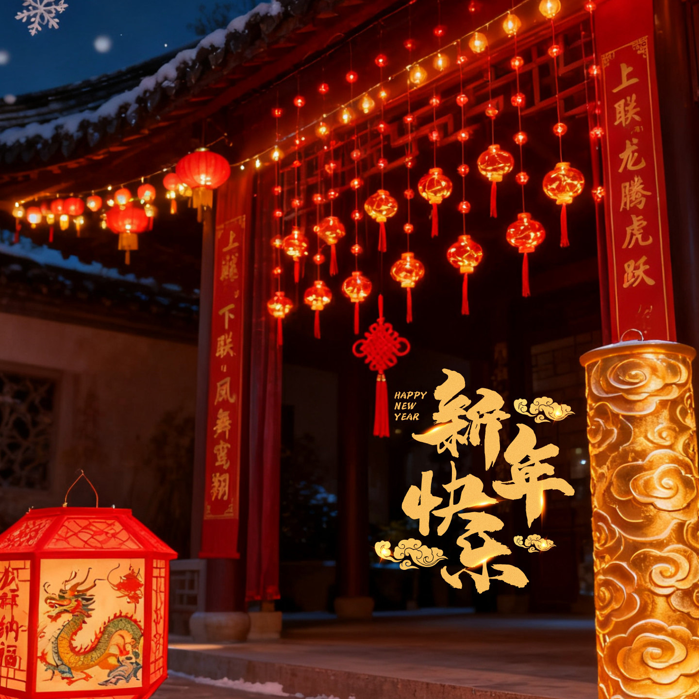 过年彩灯串2026年新款新年装饰春节氛围灯农村院子红灯笼装饰结婚